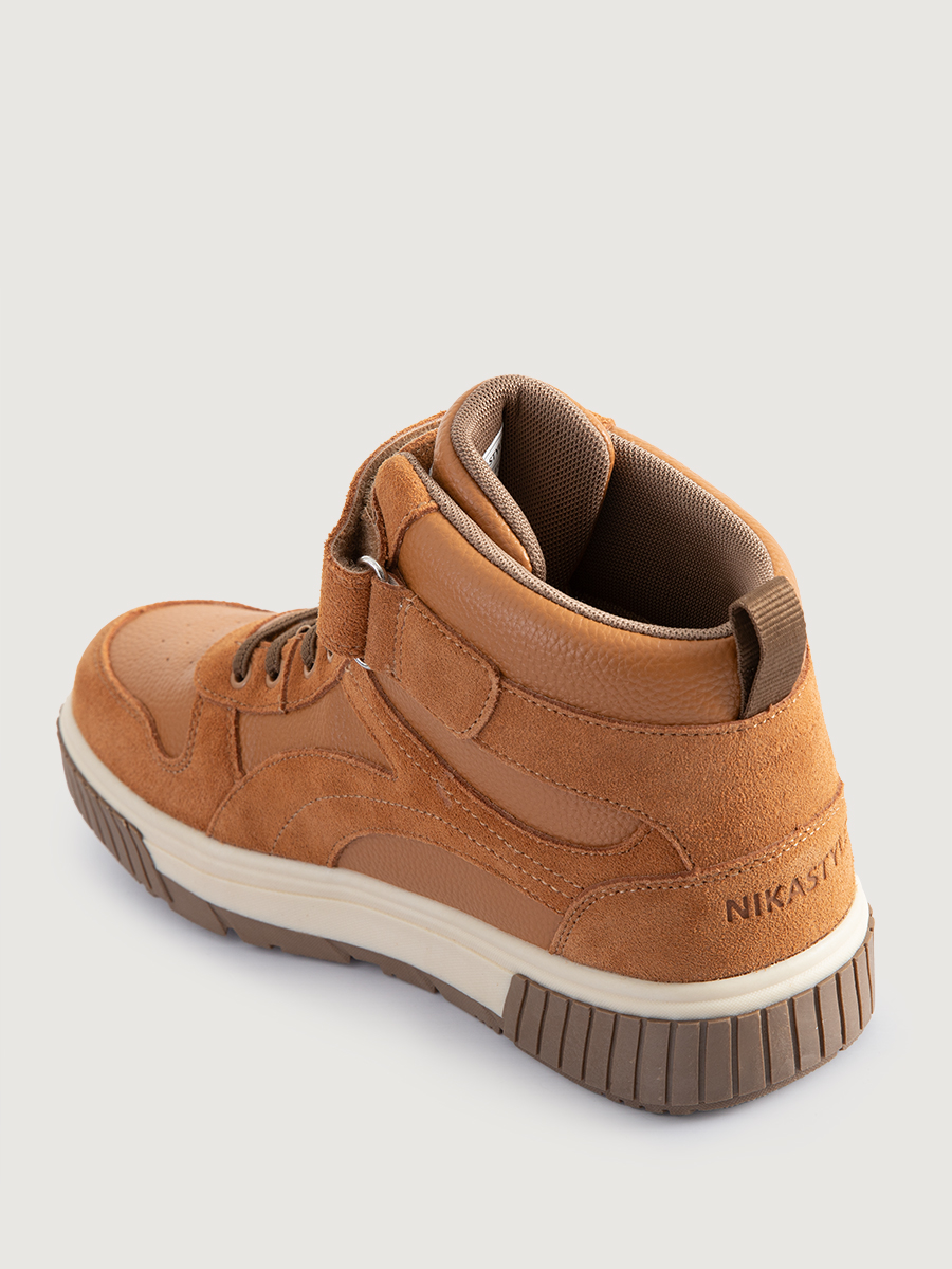 Стильная модель ботинок от бренда NIKASTYLE СНИКЕРЫ для любой осенне-весенней погоды. Ботинки изготовлены из прочных и качественных материалов: натуральная замша и высококачественная экокожа - гипоаллергенный и воздухопроницаемый материал. Технология WATERPROOF с использованием мембранных материалов, которые не пропускают влагу внутрь обуви, но позволяют ногам дышать и подойдут для влажной и слякотной погоды. Внутренняя подкладка обеспечивает тепло и комфорт, что особенно актуально в холодное время года. Анатомическая форма стельки способствует правильному формированию свода стопы, равномерно распределяет нагрузку, уменьшает усталость, обеспечивает правильное развитие стоп. Липучка и эластичные шнурки позволяют точно настроить полноту и обеспечивают легкое одевание. Ботинки имеют спортивный дизайн, что делает их универсальными для школы и спортивных мероприятий. Подошва с протектором выполнена из термопластичной резины (TPR), обладает высокой износостойкостью и хорошей амортизацией, уменьшая нагрузку на ноги.