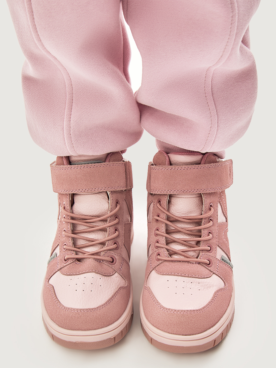 Липучка и эластичные шнурки позволяют точно настроить полноту и обеспечивают легкое одевание. Ботинки имеют спортивный дизайн, что делает их универсальными для школы и спортивных мероприятий. Подошва с протектором выполнена из термопластичной резины (TPR), обладает высокой износостойкостью и хорошей амортизацией, уменьшая нагрузку на ноги.
