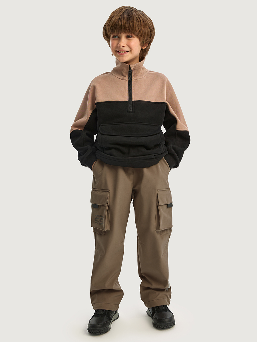 Брюки КАРГО из Softshell идеально подходят активным детям на прогулках, которые много двигаются и не сидят на месте. Softshell - это инновационный материал нового поколения, внешний слой которого защищает от влаги и ветра, внутренний слой из флиса сохраняет тепло и отводит лишнюю влагу, а промежуточный мембранный слой имеет хорошую паропроницаемость и позволяет коже дышать. Softshell приятный на ощупь, легкий и эластичный материал, не сковывающий движения ребенка.
