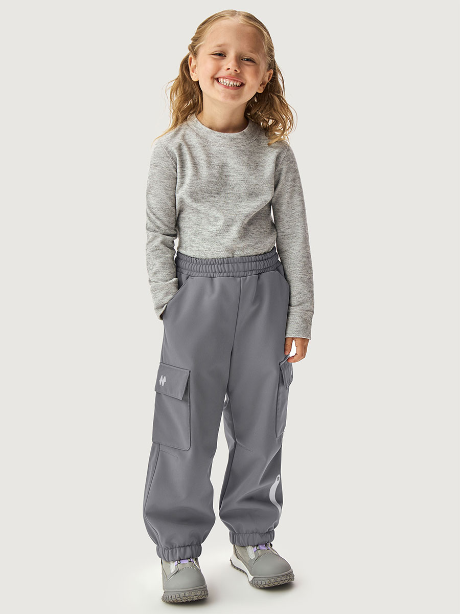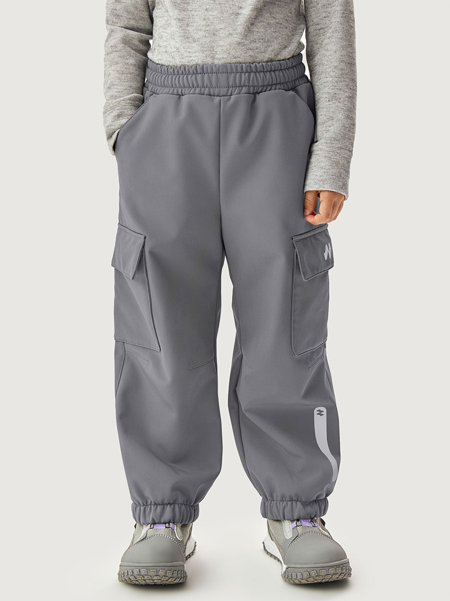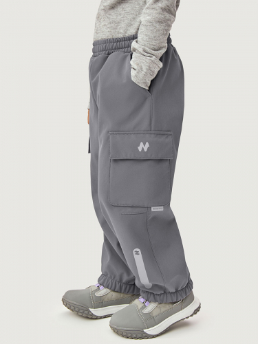 Брюки КАРГО из Softshell идеально подходят активным детям на прогулках, которые много двигаются и не сидят на месте. Softshell - это инновационный материал нового поколения, внешний слой которого защищает от влаги и ветра, внутренний слой из флиса сохраняет тепло и отводит лишнюю влагу, а промежуточный мембранный слой имеет хорошую паропроницаемость и позволяет коже дышать. Softshell приятный на ощупь, легкий и эластичный материал, не сковывающий движения ребенка.