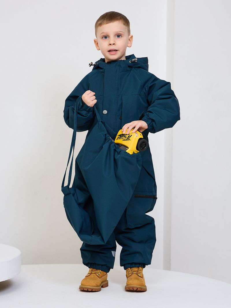 Непромокаемый комбез для мальчика можно носить при температуре от +15 до 0 градусов.