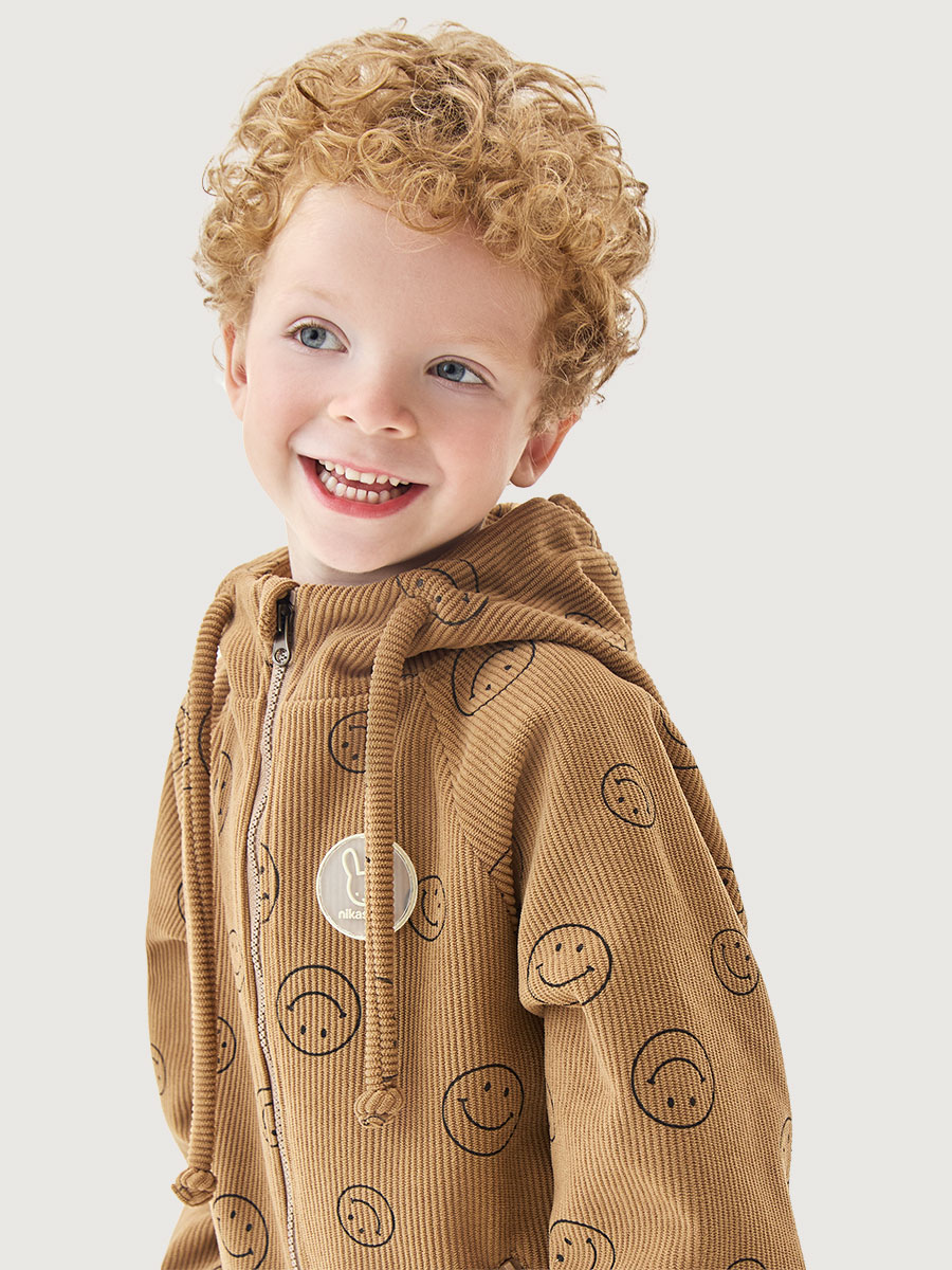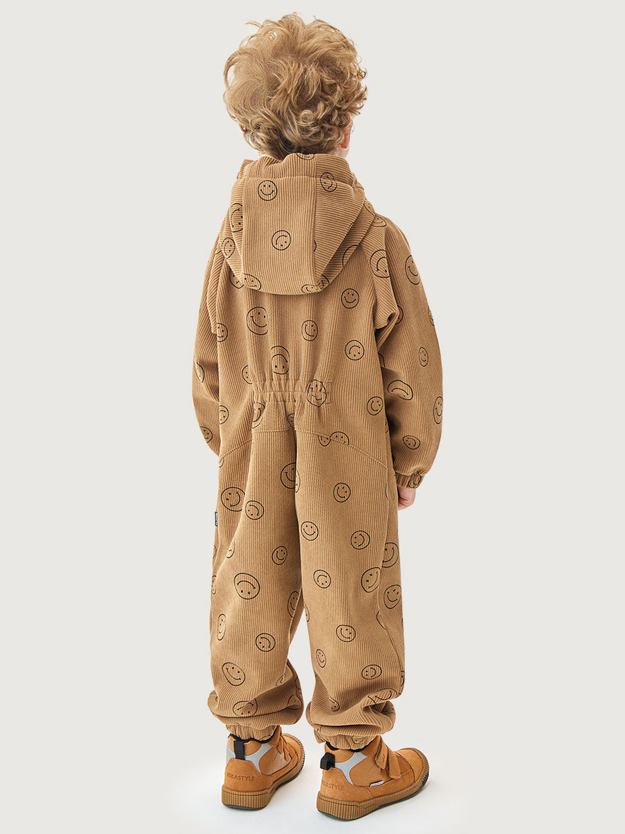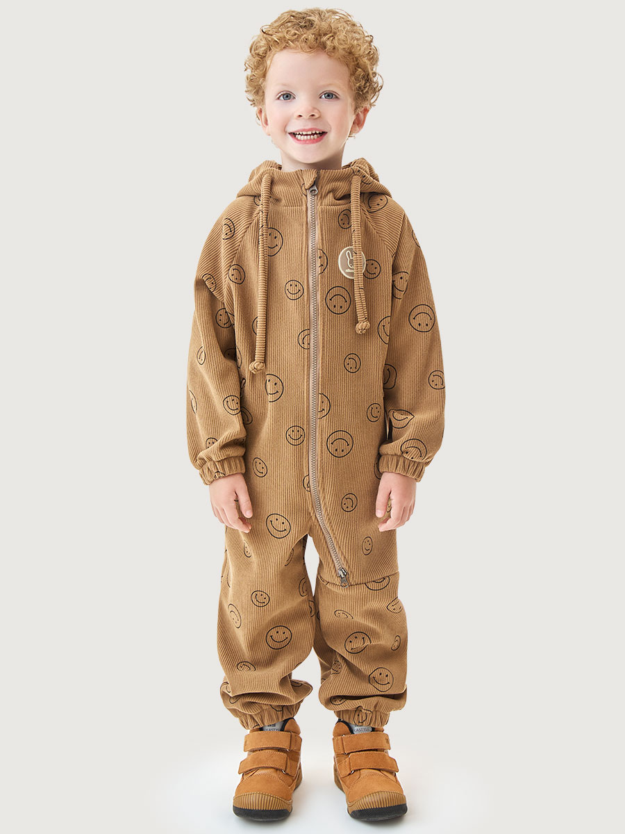 Комбинезон СМАЙЛ из вельвета, дублированного велюром. Вельвет - это мягкая, бархатистая ткань в рубчик. Благодаря тому, что с изнаночной стороны вельвет продублирован мягким велюром, ребенку будет комфортно и тепло в прохладные дни.