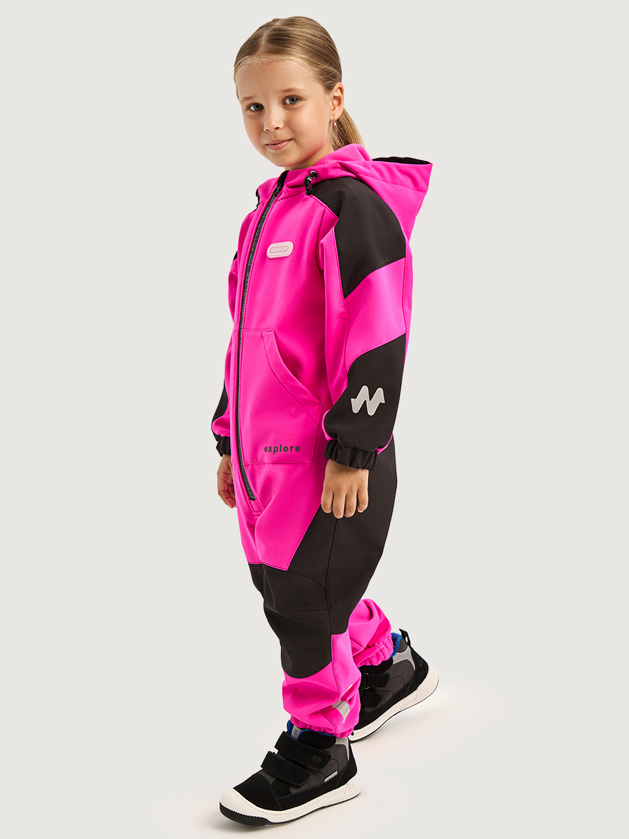 Комбинезоны ТРЕКИНГ из Softshell идеально подходят активным детям на прогулках, которые много двигаются и не сидят на месте. Softshell - это инновационный материал нового поколения, внешний слой которого защищает от влаги и ветра, внутренний слой из флиса сохраняет тепло и отводит лишнюю влагу, а промежуточный мембранный слой имеет хорошую паропроницаемость и позволяет коже дышать. Softshell приятный на ощупь, легкий и эластичный материал, не сковывающий движения ребенка.