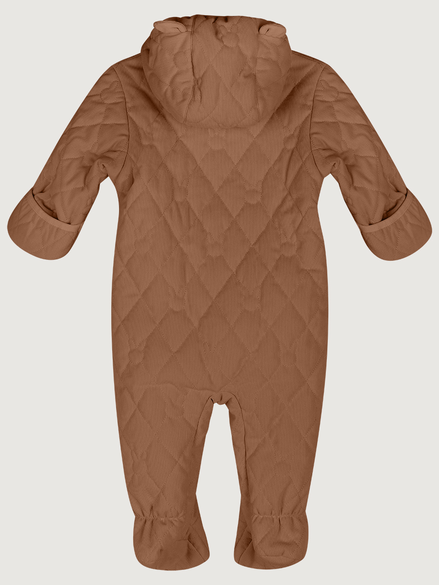 Комбинезон МАФФИН для самых маленьких из стеганного микровельвета премиум качества. Микровельвет - это мягкая, бархатистая ткань в тонкий рубчик. Микровельвет с утеплителем обеспечивает тепло в прохладные дни, а в теплые - не создает дискомфорта. Хлопковая подкладка обеспечит повышенный комфорт для ребенка.