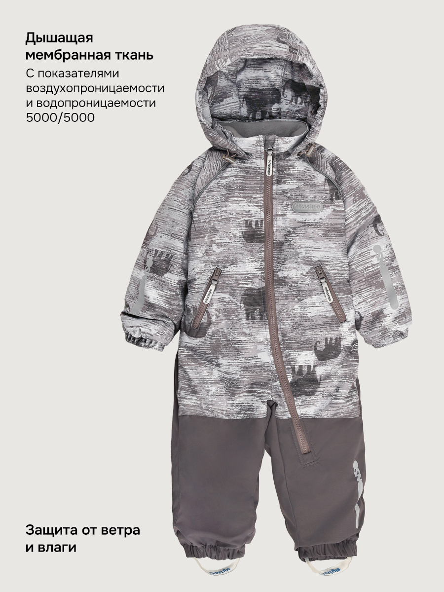 Мембранная ткань - это непродуваемый и водонепроницаемый материал, который надежно защитит от ветра и влаги. Благодаря дышащим свойствам мембраны ребенку будет комфортно в любую погоду, и он не вспотеет.
