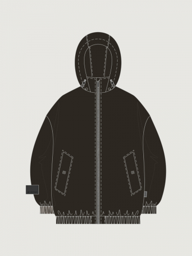 - ветрозащитная планка, капюшон с кулисой для регулировки объема,