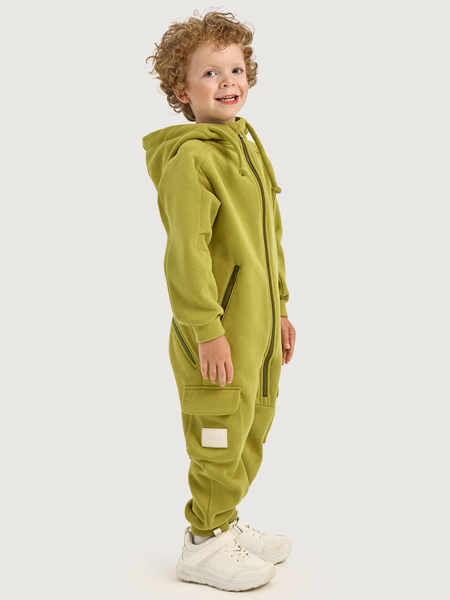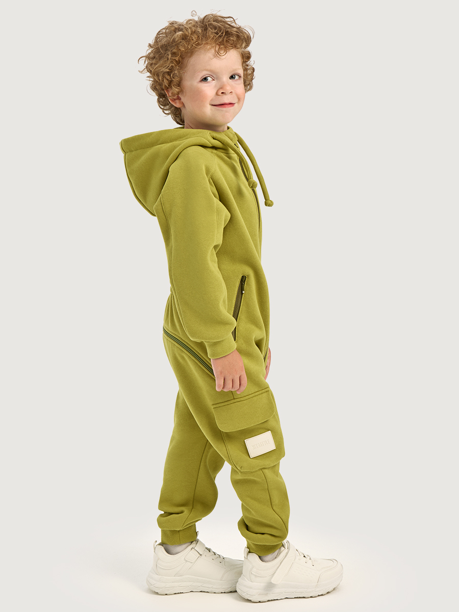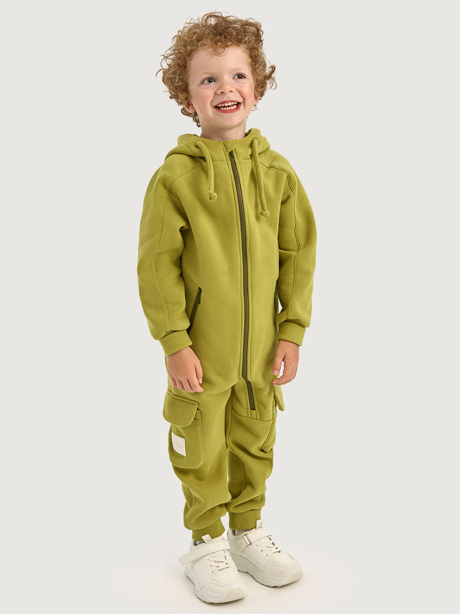 Комбинезон С КЛАПАНОМ из плотного хлопкового трикотажа с мягким стриженным начесом внутри. Модель с капюшоном, карманами на молнии. Удлиненные манжеты на рукавах и брюках из трикотажного полотна «кашкорсе», растут вместе с ребенком, надежно облегают запястье ребенка. Комбинезон с застежкой на молнию.
