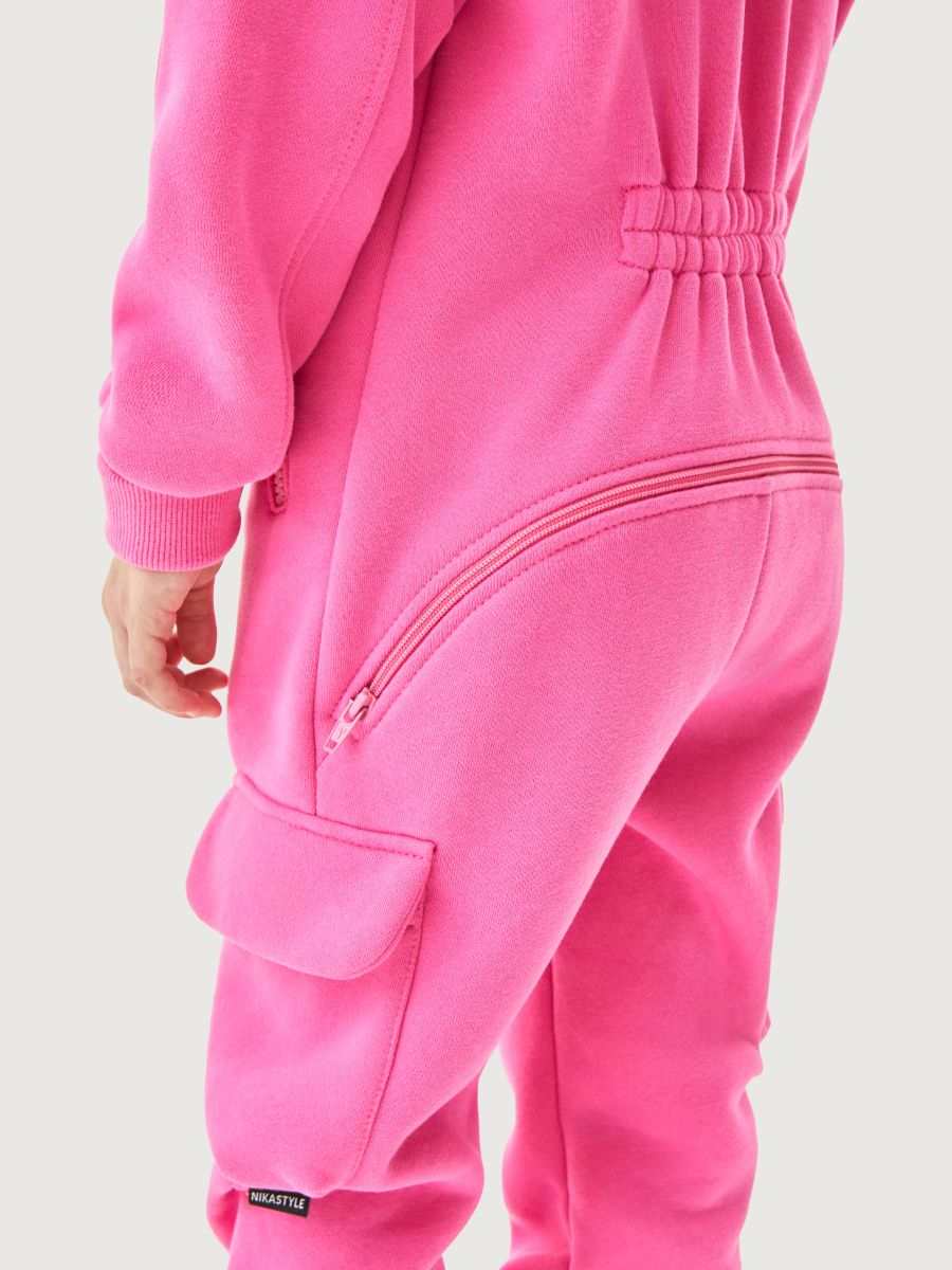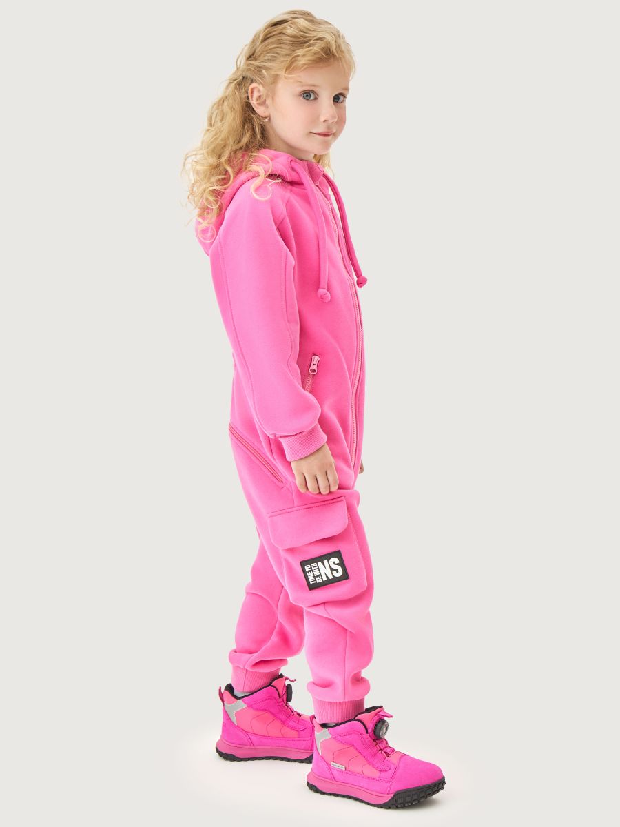 Комбинезон С КЛАПАНОМ из плотного хлопкового трикотажа с мягким стриженным начесом внутри. Модель с капюшоном, карманами на молнии. Удлиненные манжеты на рукавах и брюках из трикотажного полотна «кашкорсе», растут вместе с ребенком, надежно облегают запястье ребенка. Комбинезон с застежкой на молнию.