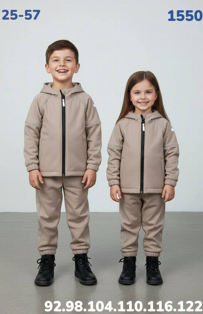 Детский комплект из ткани softshell (софтшелл) с водонепроницаемой дышащей мембранной ткани.