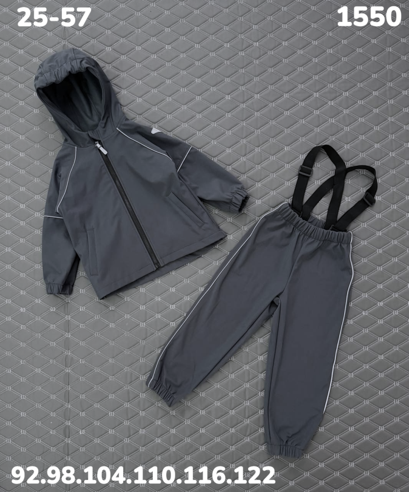 Детский комплект из ткани softshell (софтшелл) с водонепроницаемой дышащей мембранной ткани.