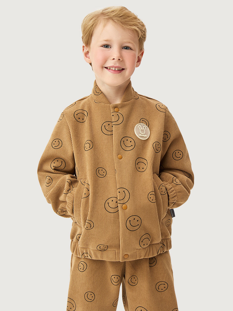 Костюм СМАЙЛ из вельвета, дублированного велюром. Вельвет - это мягкая, бархатистая ткань в рубчик. Благодаря тому, что с изнаночной стороны вельвет продублирован мягким велюром ребенку будет комфортно и тепло в прохладные дни.