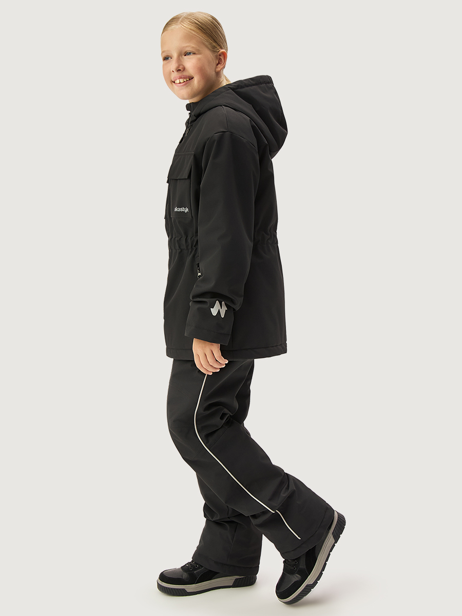 Мембранная ткань - это непродуваемый и водонепроницаемый материал, который надежно защищает от ветра и влаги. Благодаря дышащим свойствам мембраны ребенку будет комфортно в любую погоду и он не вспотеет. Ткань обработана снаружи экологически чистым протектором TEFLON для защиты от воды и грязи.