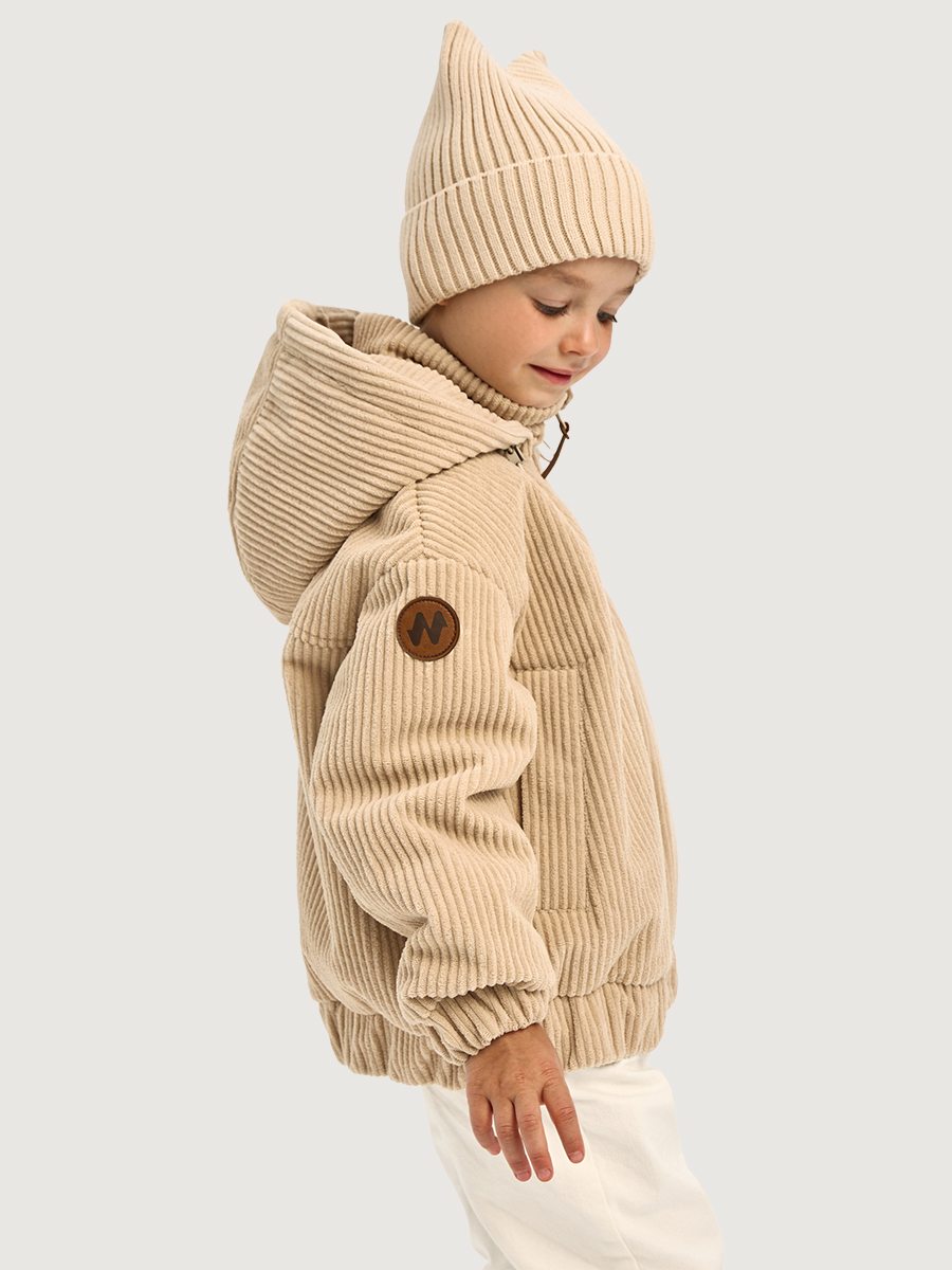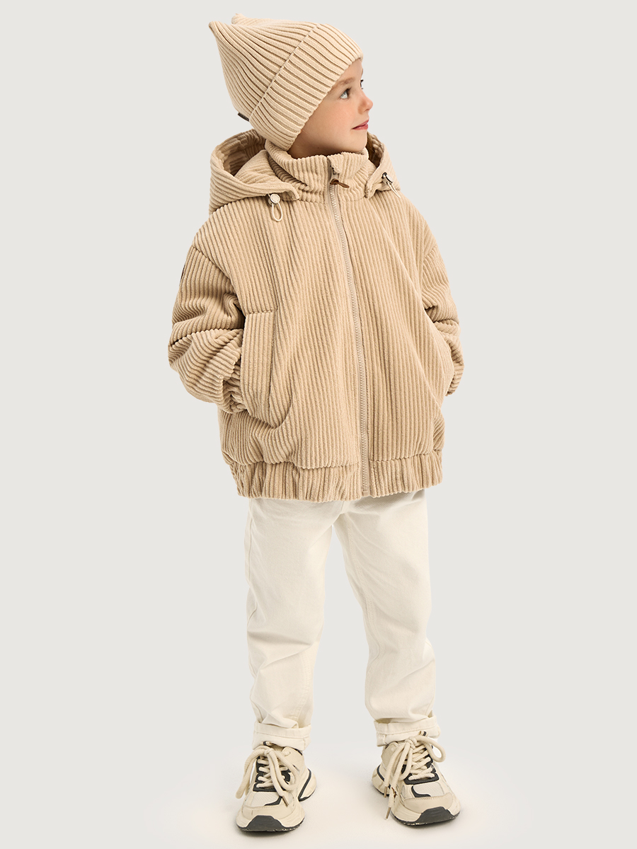 Куртка ОВЕР из вельветовой ткани на мембране 5000/5000. Мембранная ткань - это непродуваемый и водонепроницаемый материал, который надежно защищает от ветра и влаги. Благодаря дышащим свойствам мембраны ребенку будет комфортно в любую погоду, и он не вспотеет. С лицевой стороны ткань с бархатистой мягкой структурой в рубчик. Мембрана в сочетании с утеплителем нового поколения FIBERlite сохраняет тепло во время прогулок, позволяя телу дышать. Хлопковая подкладка обеспечит повышенный комфорт для ребенка.