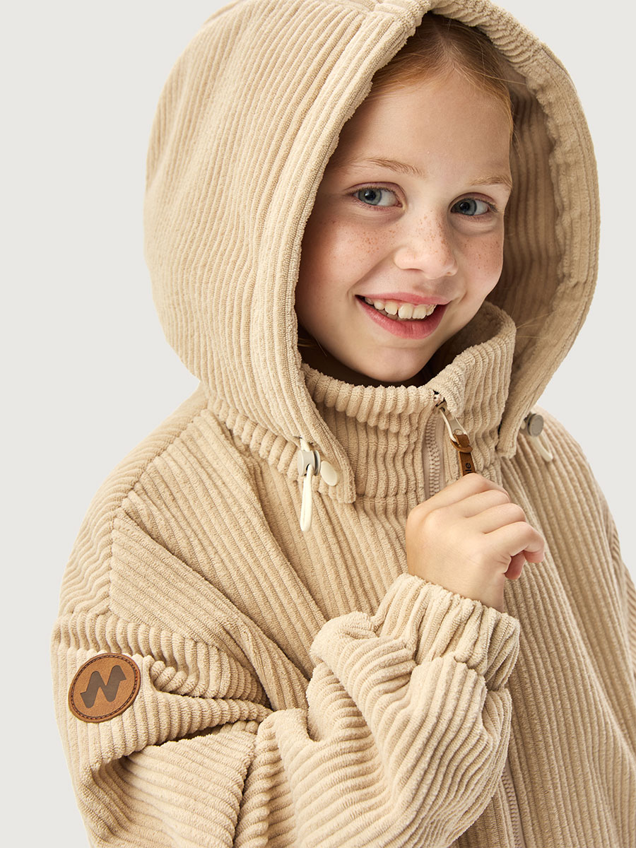 Куртка ОВЕР из вельветовой ткани на мембране 5000/5000. Мембранная ткань - это непродуваемый и водонепроницаемый материал, который надежно защищает от ветра и влаги. Благодаря дышащим свойствам мембраны ребенку будет комфортно в любую погоду, и он не вспотеет. С лицевой стороны ткань с бархатистой мягкой структурой в рубчик. Мембрана в сочетании с утеплителем нового поколения FIBERlite сохраняет тепло во время прогулок, позволяя телу дышать. Хлопковая подкладка обеспечит повышенный комфорт для ребенка.