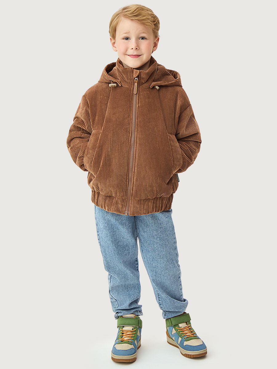 Куртка ОВЕР из вельветовой ткани на мембране 5000/5000. Мембранная ткань - это непродуваемый и водонепроницаемый материал, который надежно защищает от ветра и влаги. Благодаря дышащим свойствам мембраны ребенку будет комфортно в любую погоду, и он не вспотеет. С лицевой стороны ткань с бархатистой мягкой структурой в рубчик. Мембрана в сочетании с утеплителем нового поколения FIBERlite сохраняет тепло во время прогулок, позволяя телу дышать. Хлопковая подкладка обеспечит повышенный комфорт для ребенка.
