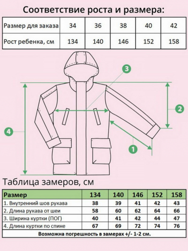 Длина рукава корректируется отворотом и липой, внутри трикотажные манжеты.