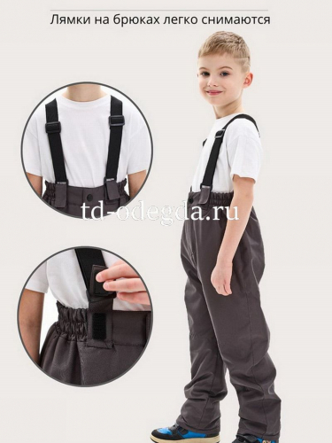 Внутри брючин вшиты защитные манжеты на обувь.