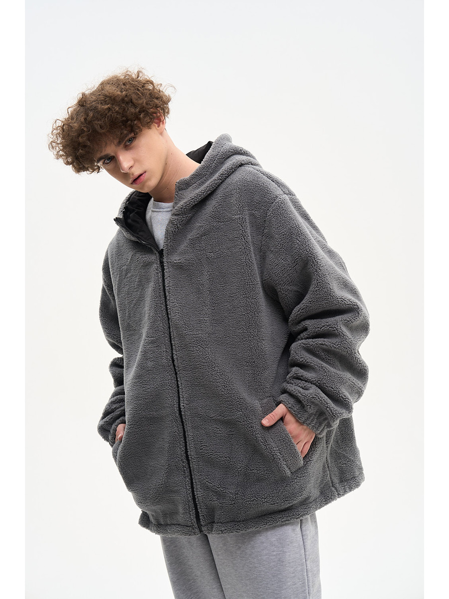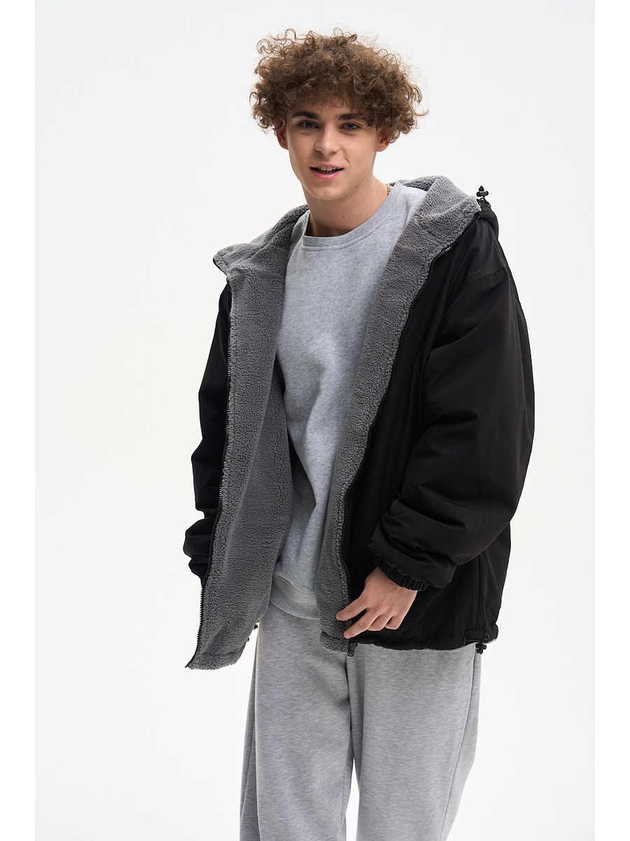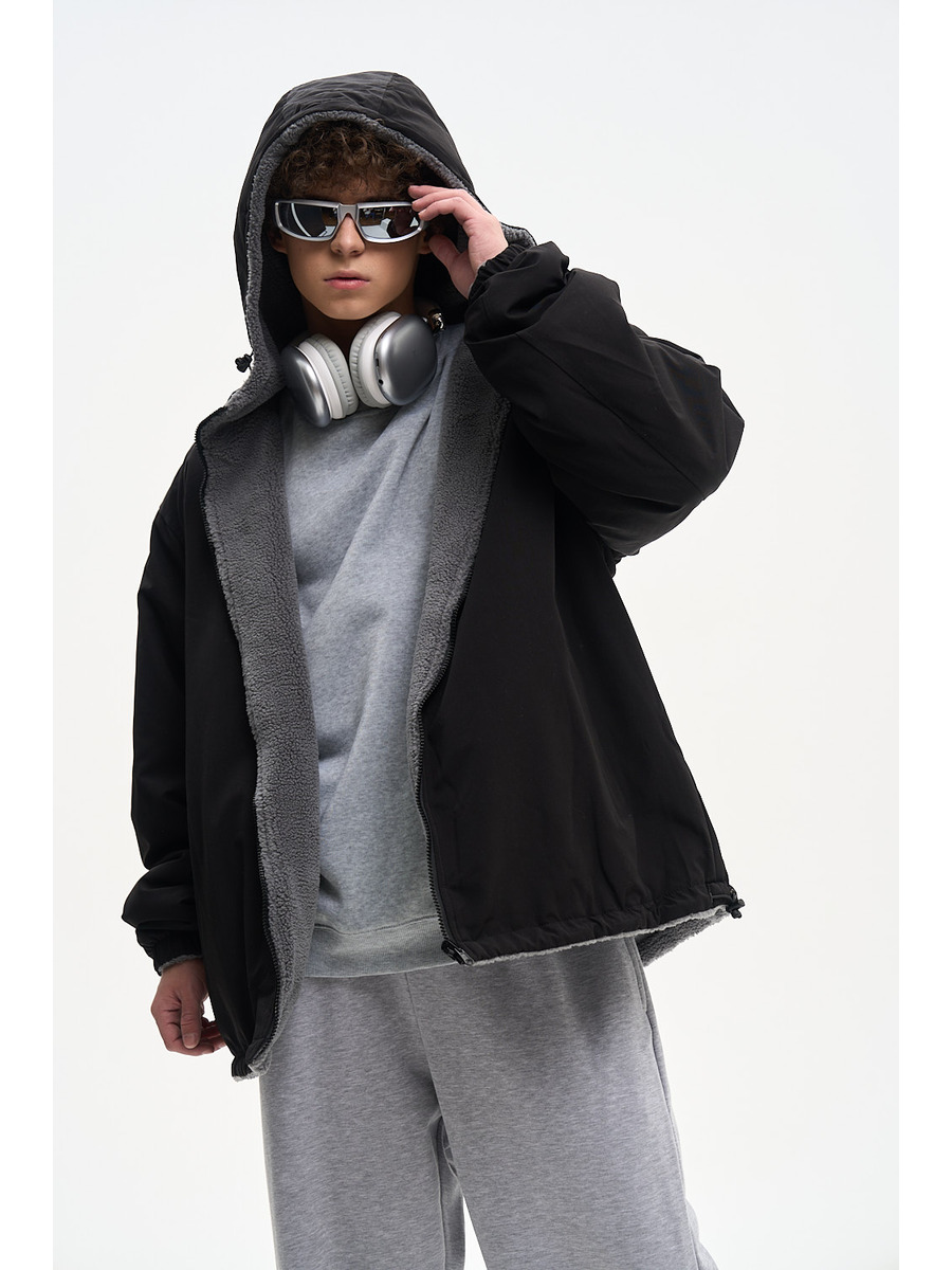 ДВУХСТОРОННИЙ НАЧЕС. Куртка оверсайз. Унисекс. На одной стороне - водоотталкивающая курточная ткань. Другая сторона из исскуственного меха "шерпа". Карманы по обеим сторонам. Тракторная молния. В капюшоне и по низу продета шляпная резинка со стопперами.