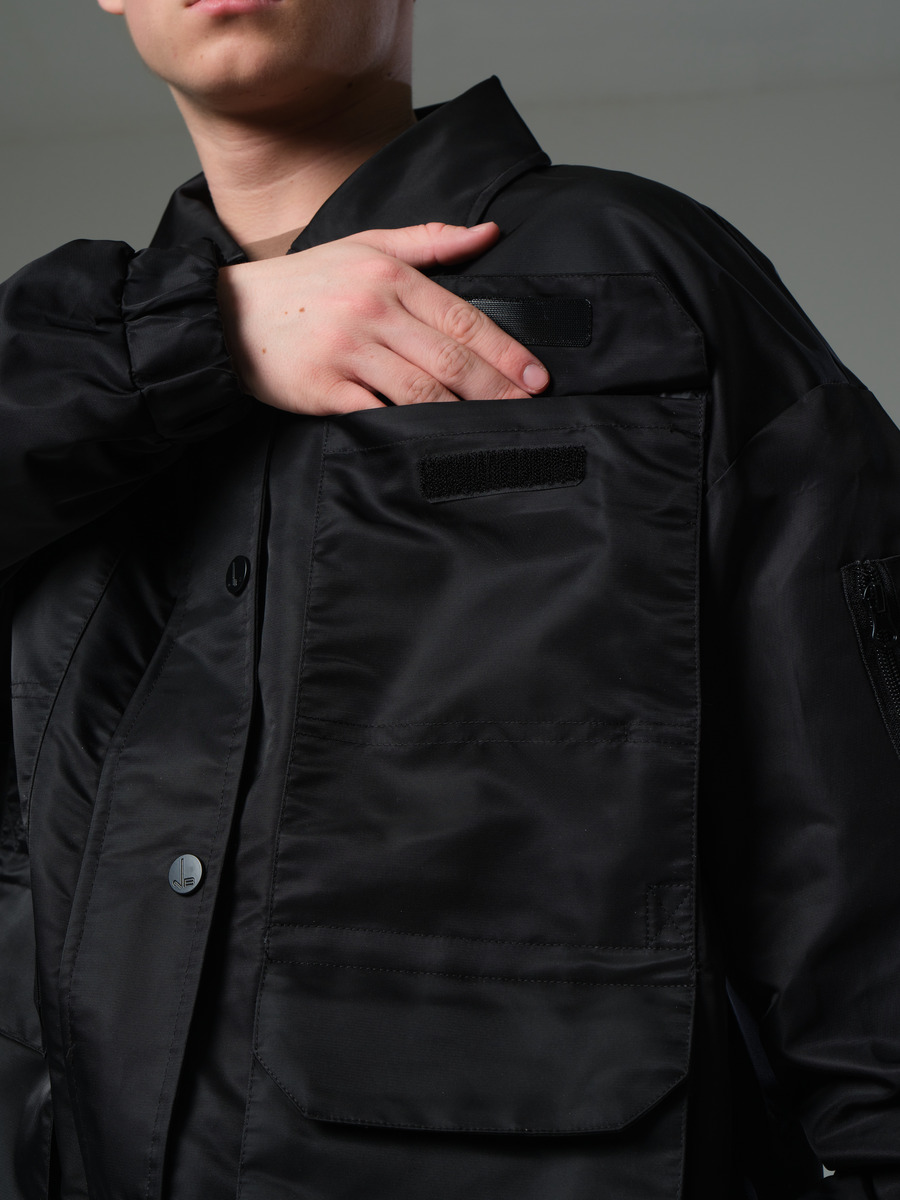 Стильная куртка свободного силуэта на подкладе без утеплителя с отложным воротником и 5-тью карманами. Манжеты и низ изделия на резинке. Застегивается на кнопки с фирменнным логотипом и снабжена ветрозащитной планкой. Два верхних накладных кармана с клапанами на полочке (клапаны фиксируются липучкой). Два нижних кармана-портфеля с клапанами дополнительно застегиваются на молнию. В рукаве куртки имеется боковой карман на молнии. Подходит для теплой весенней погоды, устойчива к попаданию влаги. Вся наша продукция сертифицирована и соответствует высочайшим стандартам качества, наша компания является участником программы "Бережливое производство"