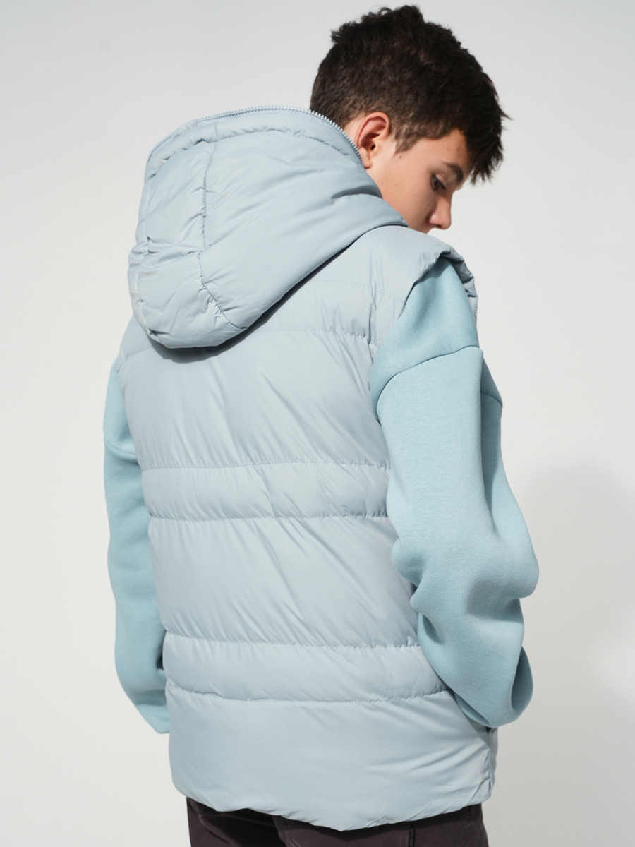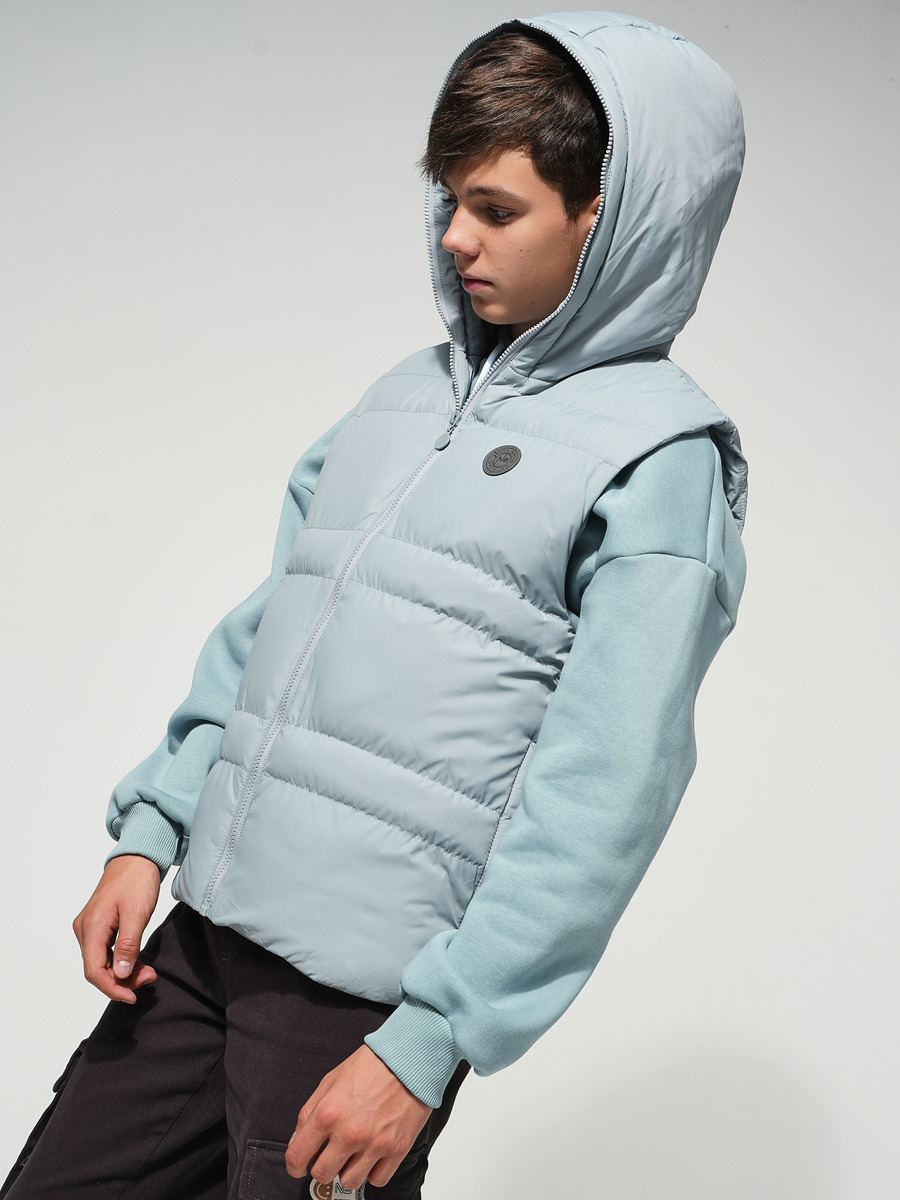 Утепленный демисезонный стеганый жилет свободного прямого силуэта. Втачной капюшон, застегивающийся на высокую молнию, надежно защищает от ветра и дождя. На полочке светоотражающая нашивка с фирменным логотипом. Застежка центральная на молнии с ветрозащитной стеганой планкой, на круглом пуллере застежки-молнии фирменный логотип. Два удобных кармана в боковых швах. Вся наша продукция сертифицирована и соответствует высочайшим стандартам качества, наша компания является участником программы "Бережливое производство"