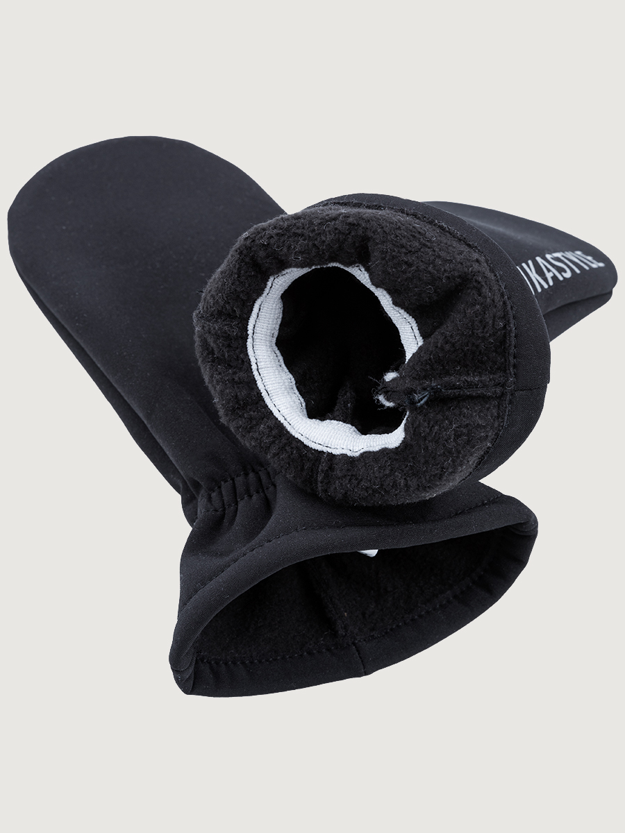 Варежки оснащены вшитой резиночкой, которая позволяет повесить их на руку и предотвратить потерю.