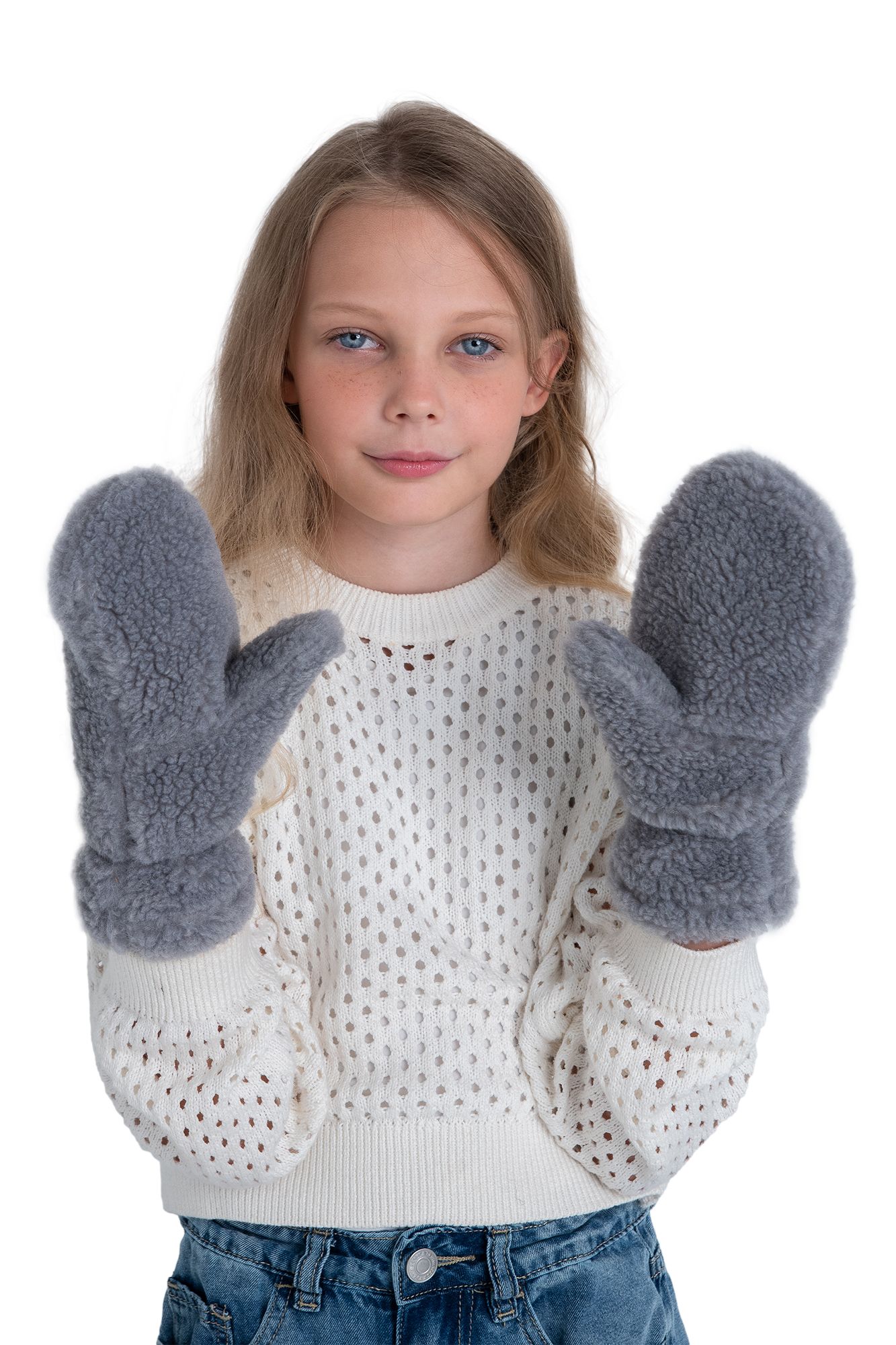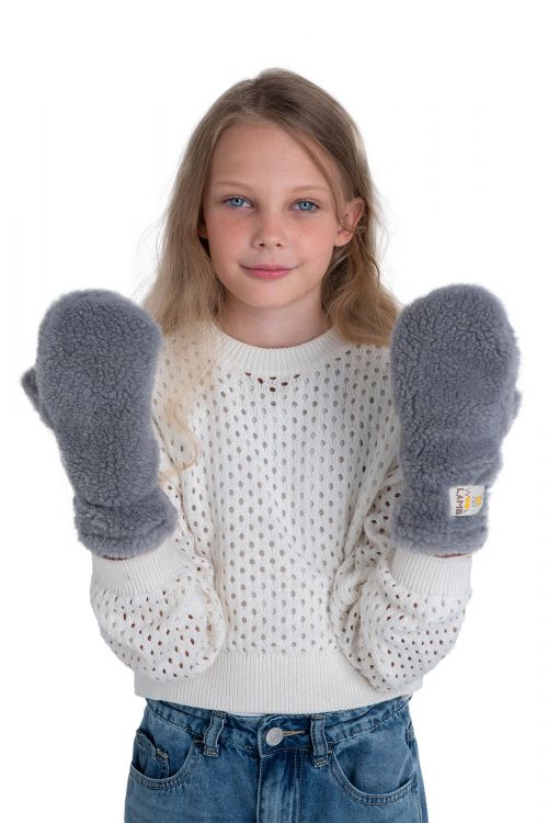 Варежки детские меховые серые
