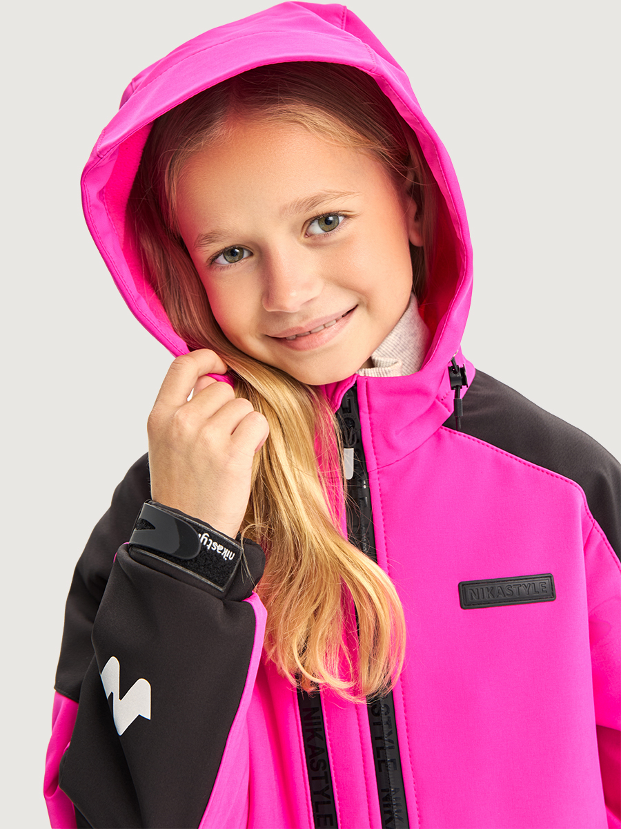 Ветровка для девочки СКАЙЛАЙН из Softshell идеально подходит активным детям на прогулках, которые много двигаются и не сидят на месте. Softshell - это инновационный материал нового поколения, внешний слой которого защищает от влаги и ветра, внутренний слой из флиса сохраняет тепло и отводит лишнюю влагу, а промежуточный мембранный слой имеет хорошую паропроницаемость и позволяет коже дышать. Softshell приятный на ощупь, легкий и эластичный материал, не сковывающий движения ребенка.