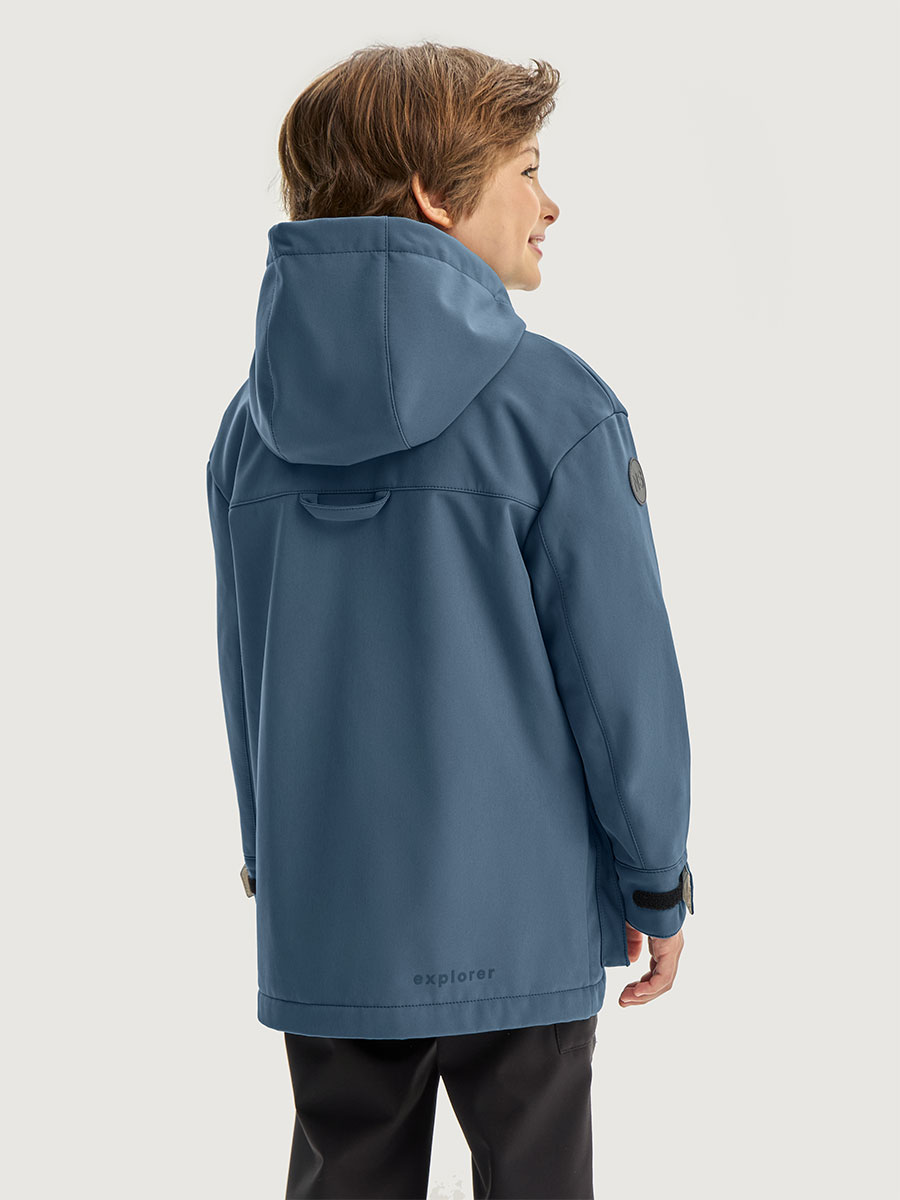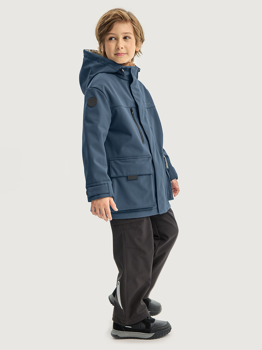 Ветровка для мальчика ДЖУНИОР из Softshell идеально подходит активным детям на прогулках, которые много двигаются и не сидят на месте. Softshell - это инновационный материал нового поколения, внешний слой которого защищает от влаги и ветра, внутренний слой из флиса сохраняет тепло и отводит лишнюю влагу, а промежуточный мембранный слой имеет хорошую паропроницаемость и позволяет коже дышать. Softshell приятный на ощупь, легкий и эластичный материал, не сковывающий движения ребенка.