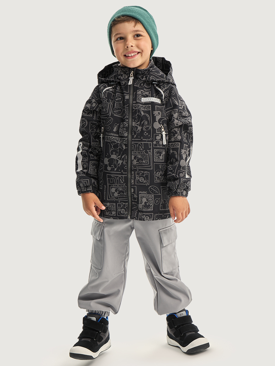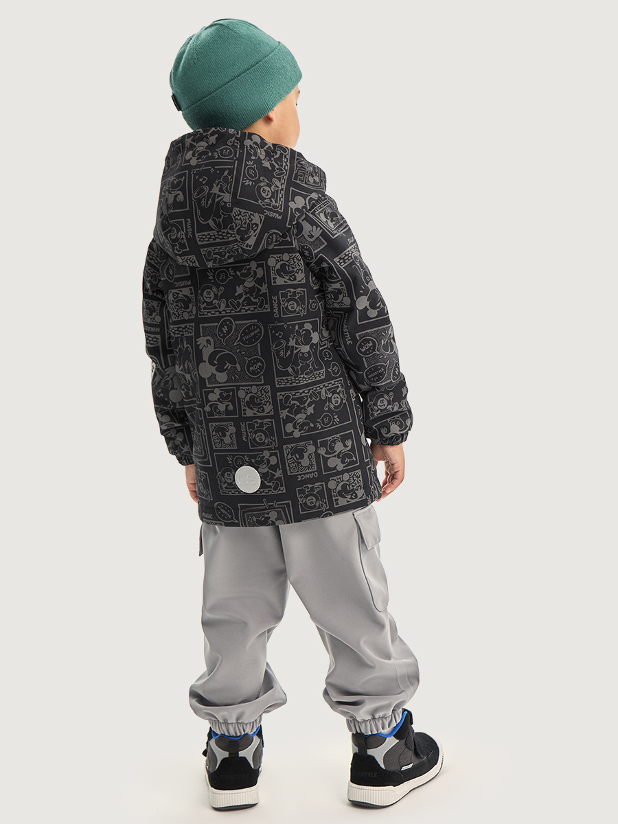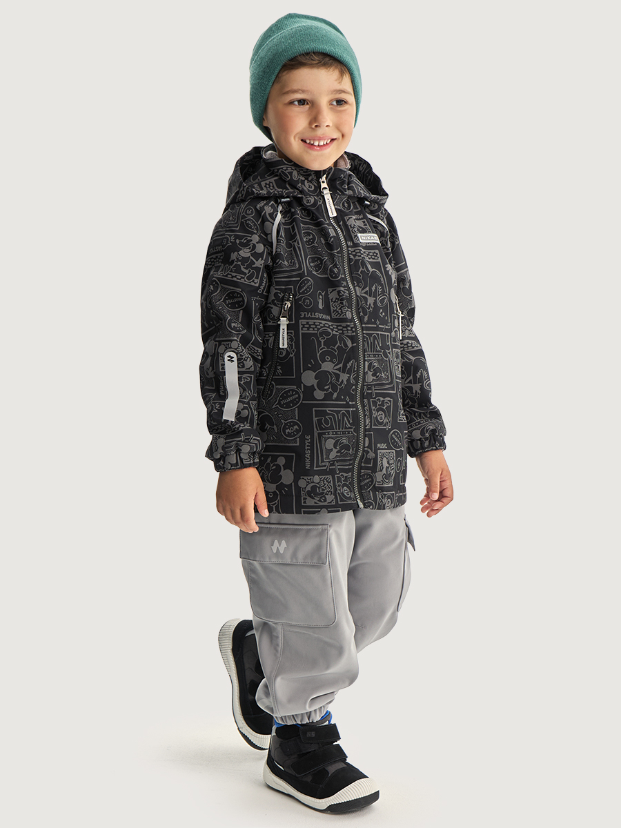Мембранная ткань - это непродуваемый и водонепроницаемый материал, который надежно защищает от ветра и влаги. Благодаря дышащим свойствам мембраны ребенку будет комфортно в любую погоду, и он не вспотеет. Ткань обработана снаружи экологически чистым протектором TEFLON для защиты от воды и грязи. Флисовая подкладка отводит влагу и имеет хорошие теплоизоляционные свойства.