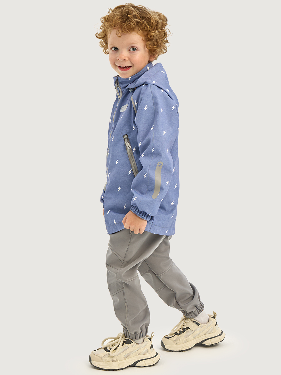 Мембранная ткань - это непродуваемый и водонепроницаемый материал, который надежно защищает от ветра и влаги. Благодаря дышащим свойствам мембраны ребенку будет комфортно в любую погоду, и он не вспотеет. Ткань обработана снаружи экологически чистым протектором TEFLON для защиты от воды и грязи. Флисовая подкладка отводит влагу и имеет хорошие теплоизоляционные свойства.
