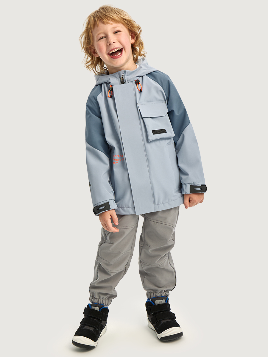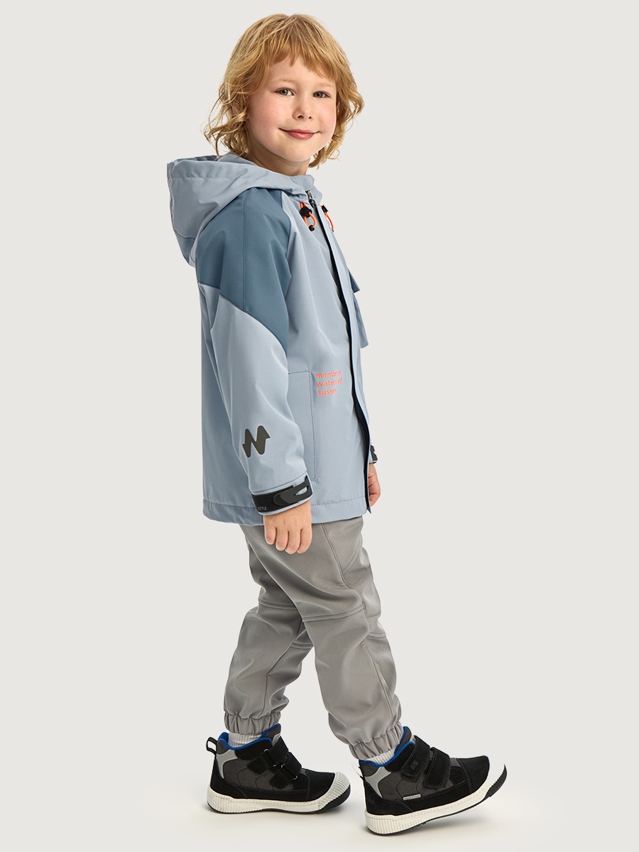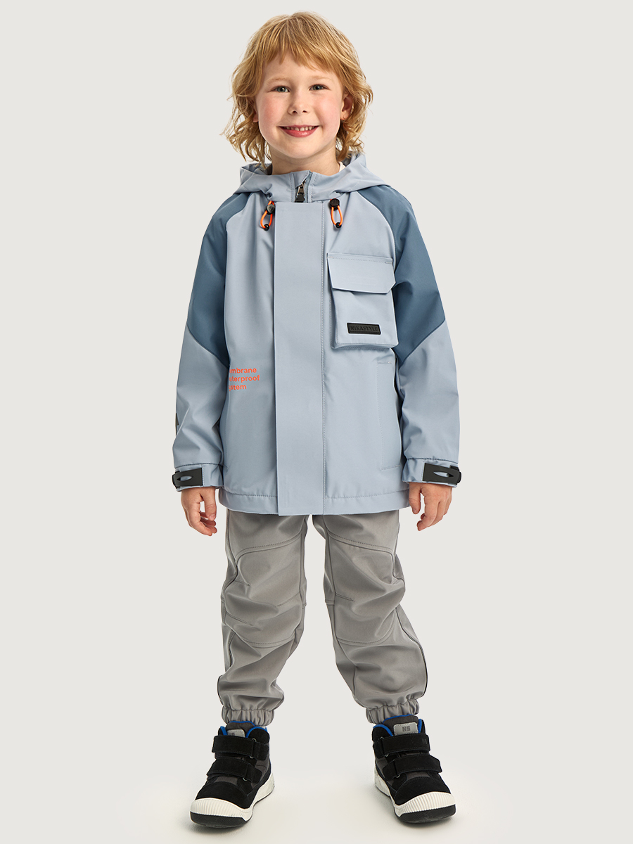 Мембранная ткань - это непродуваемый и водонепроницаемый материал, который надежно защищает от ветра и влаги. Благодаря дышащим свойствам мембраны ребенку будет комфортно в любую погоду, и он не вспотеет. Флисовая подкладка отводит влагу и имеет хорошие теплоизоляционные свойства.