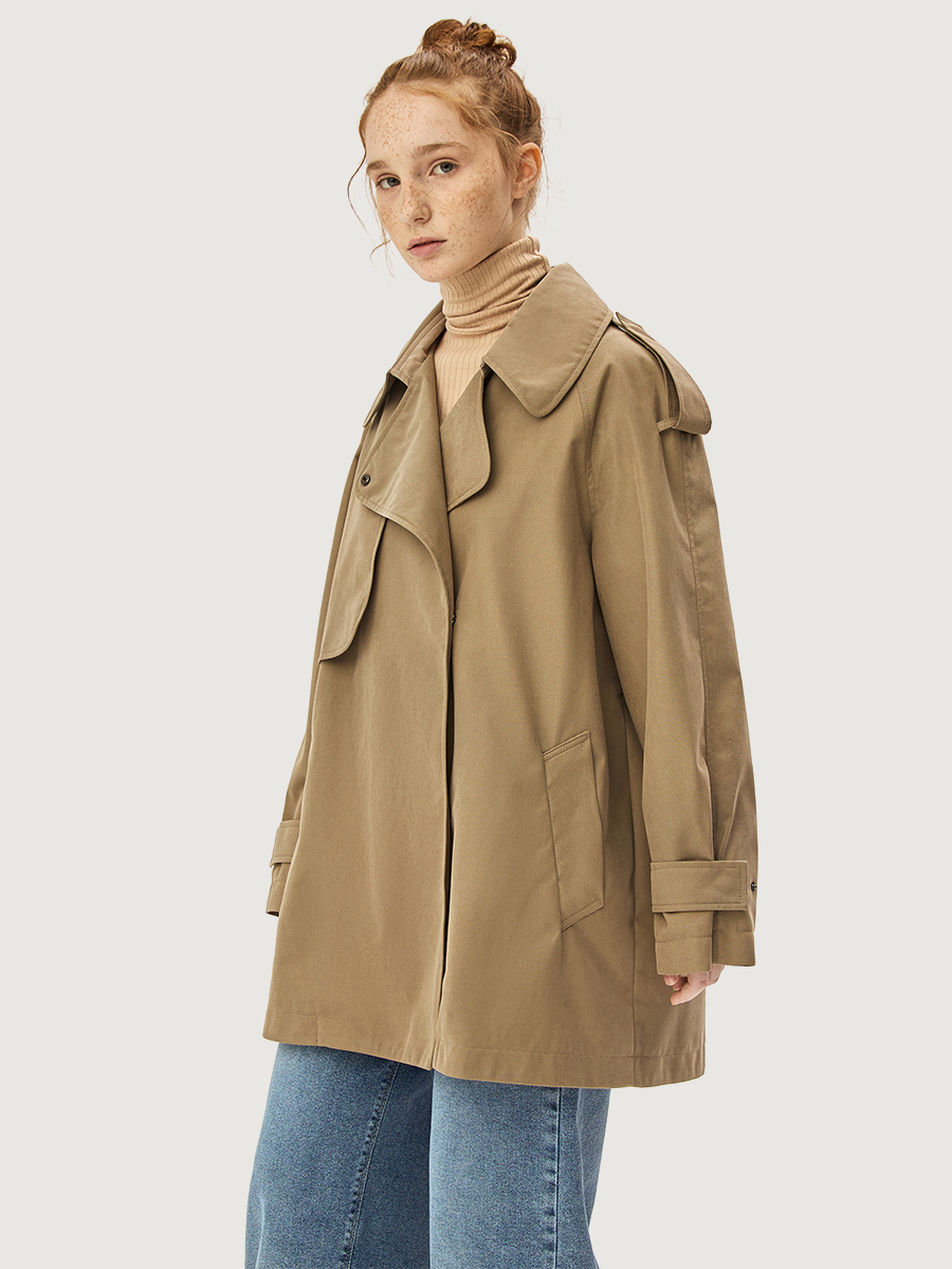 - двубортная застежка на кнопки, борта могут быть застегнуты до верха или расстегнуты с разложенными в разные стороны лацканами;