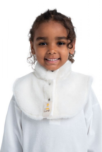 Розничная цена 1320руб. Манишка ДЕТСКАЯ изготовлена из натуральной шерсти, подкладка флис, металлические кнопки, полностью расстегивается, теплая, комфортная, удобно использовать., ВОРОТНИК-МАНИШКА, Воротник-манишка из натуральной овечьей шерсти – самый лучший способ защиты области шеи, горла, верхнего отдела позвоночника., Манишка выполнена из уникального материала – вязанный шерстяной мех на трикотажной основе. Высота ворса 5-7 мм, высокая эластичность и мягкость материала. Она мягко облегает шею, способствует глубокому прогреванию, сохранению тепла.  Благодаря широкой площади охватывает также грудную область и верхнюю часть спины., -оказывает массажный эффект, улучшает микроциркуляции крови в области позвонков.    - профилактика простуды и воспаления горла, при ангине    - профилактика остеохондроза шейных позвонков    - защита горла и груди при работах на холоде, при влажности и сквозняках