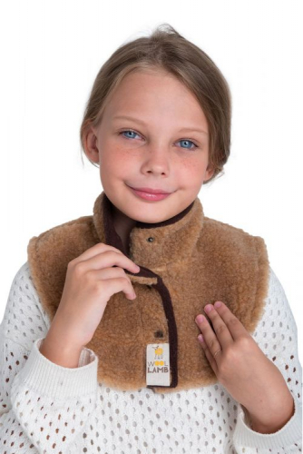 Розничная цена 1320руб. Манишка ДЕТСКАЯ изготовлена из натуральной шерсти, подкладка флис, металлические кнопки, полностью расстегивается, теплая, комфортная, удобно использовать., ВОРОТНИК-МАНИШКА, Воротник-манишка из натуральной овечьей шерсти – самый лучший способ защиты области шеи, горла, верхнего отдела позвоночника., Манишка выполнена из уникального материала – вязанный шерстяной мех на трикотажной основе. Высота ворса 5-7 мм, высокая эластичность и мягкость материала. Она мягко облегает шею, способствует глубокому прогреванию, сохранению тепла.  Благодаря широкой площади охватывает также грудную область и верхнюю часть спины., -оказывает массажный эффект, улучшает микроциркуляции крови в области позвонков.    - профилактика простуды и воспаления горла, при ангине    - профилактика остеохондроза шейных позвонков    - защита горла и груди при работах на холоде, при влажности и сквозняках