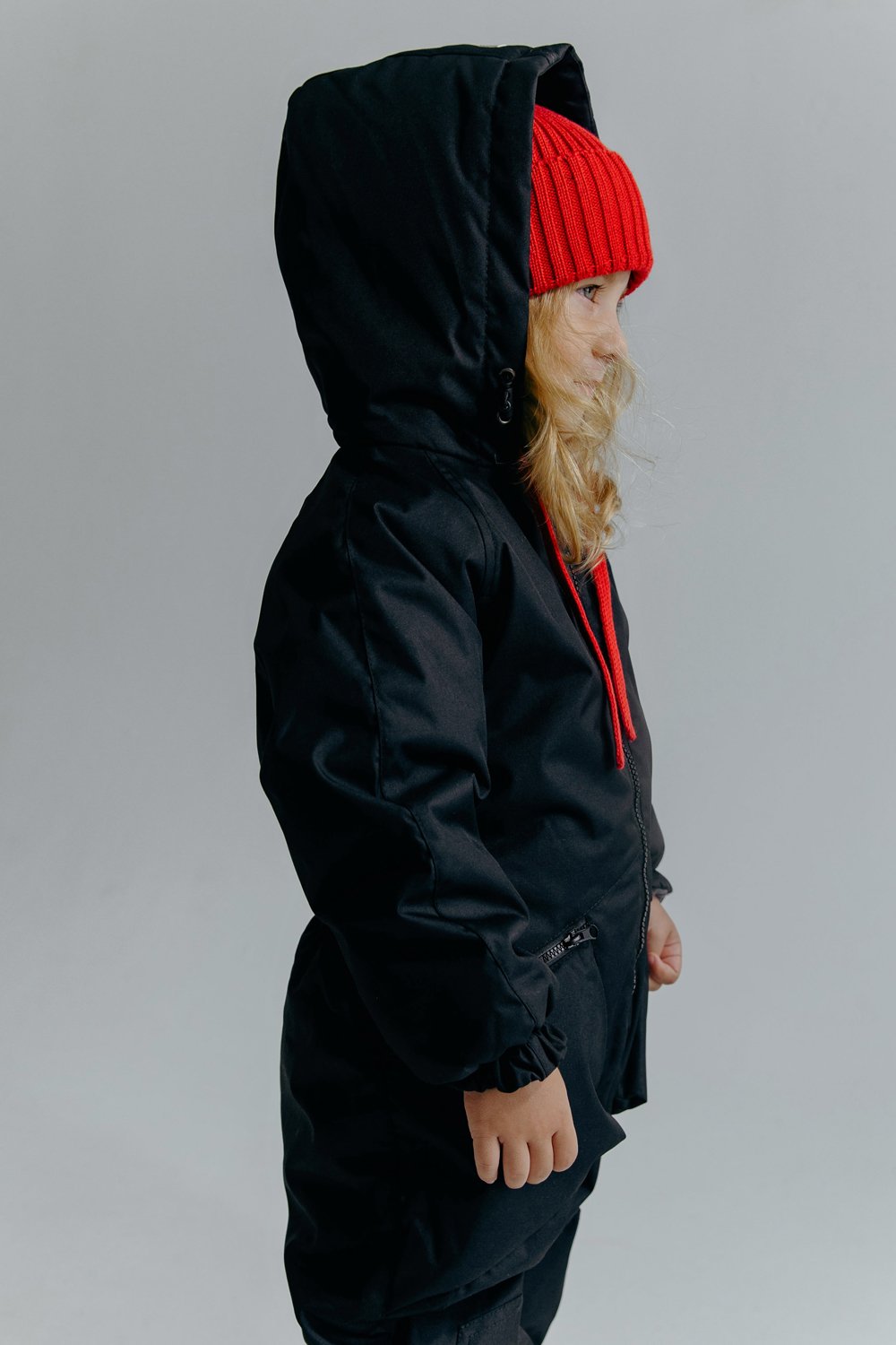 Обновленная модель с втачным капюшоном и воротником-стойкой для лучшей защиты от ветра. Два накладных кармана с застежками на молнии, вставки из прочной ткани: задняя часть, колени, по низу шаговых швов. Утяжка по линии талии на спинке для лучшего прилегания и световозвращающие элементы для безопасности в темное время суток. Внутренние мягкие лямки из помочной резины, благодаря которым можно скидывать верхнюю часть комбинезона и носить в помещении по принципу рюкзака.