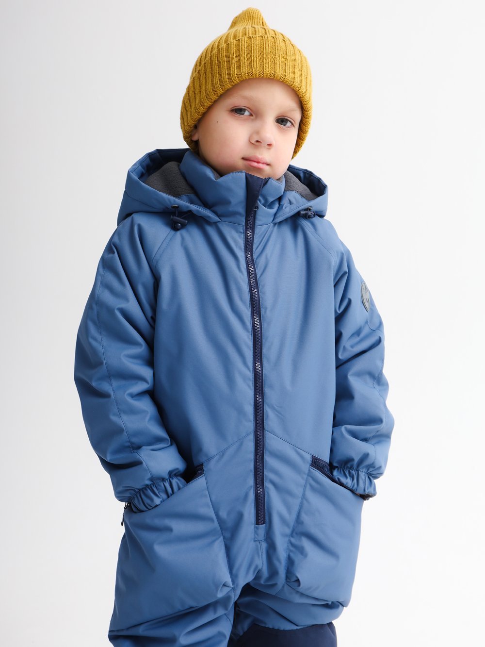 Обновленная модель с втачным капюшоном и воротником-стойкой для лучшей защиты от ветра. Два накладных кармана с застежками на молнии, вставки из прочной ткани: задняя часть, колени, по низу шаговых швов. Утяжка по линии талии на спинке для лучшего прилегания и световозвращающие элементы для безопасности в темное время суток. Внутренние мягкие лямки из помочной резины, благодаря которым можно скидывать верхнюю часть комбинезона и носить в помещении по принципу рюкзака.