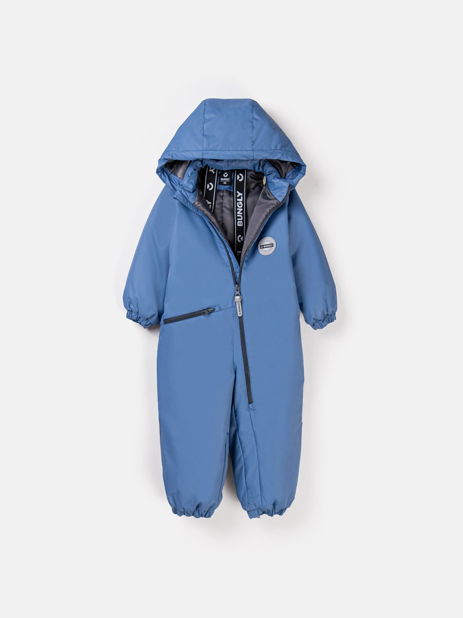Застёжка-молния смещена в левую штанину, чтобы переодевание было быстрым и удобным, а защита от защемлений делает её безопасной для самостоятельных малышей.