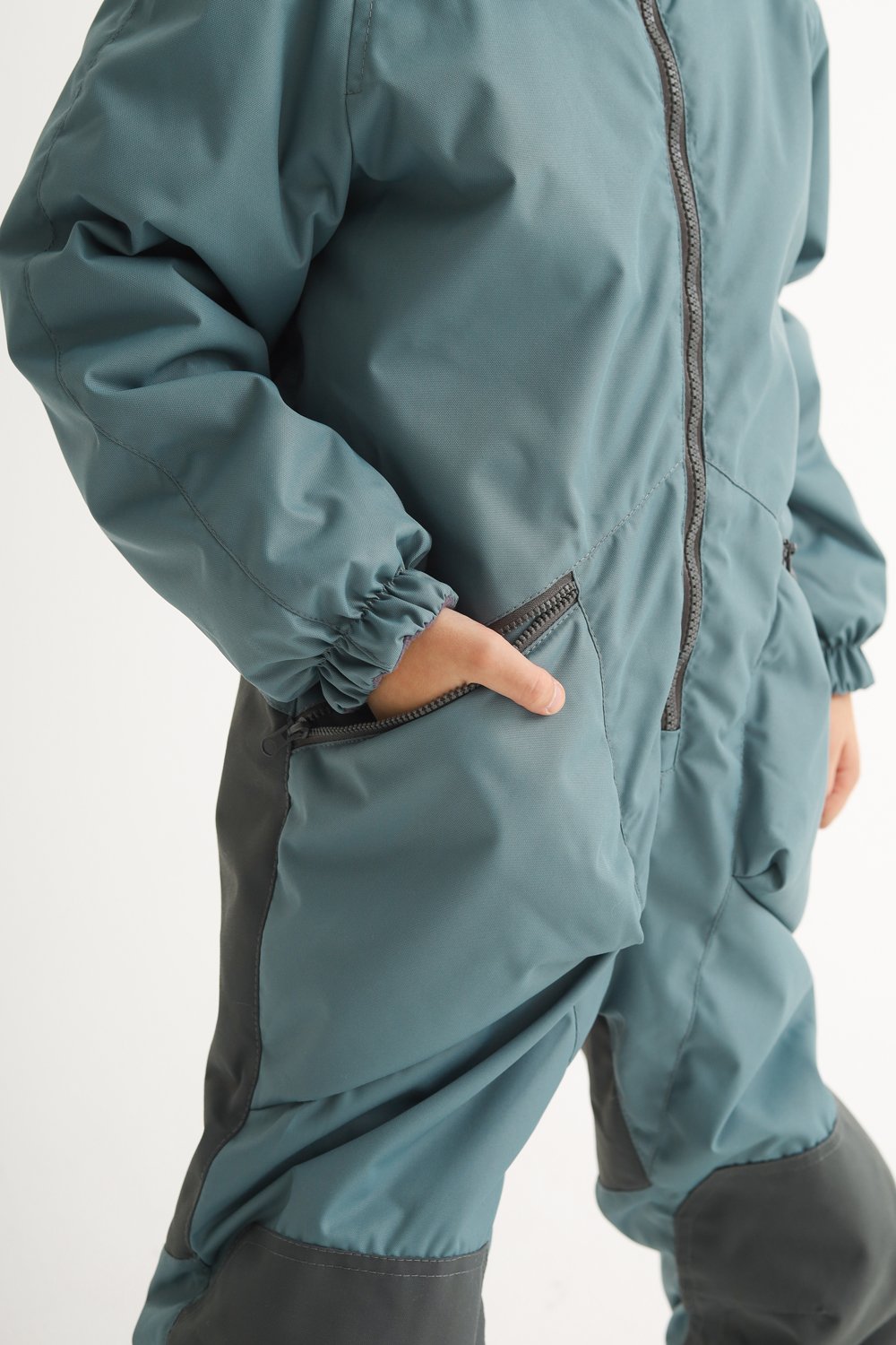 Обновленная модель с втачным капюшоном и воротником-стойкой для лучшей защиты от ветра. Два накладных кармана с застежками на молнии, вставки из прочной ткани: задняя часть, колени, по низу шаговых швов. Утяжка по линии талии на спинке для лучшего прилегания и световозвращающие элементы для безопасности в темное время суток. Внутренние мягкие лямки из помочной резины, благодаря которым можно скидывать верхнюю часть комбинезона и носить в помещении по принципу рюкзака.