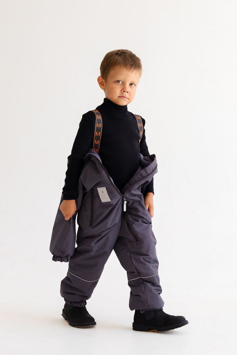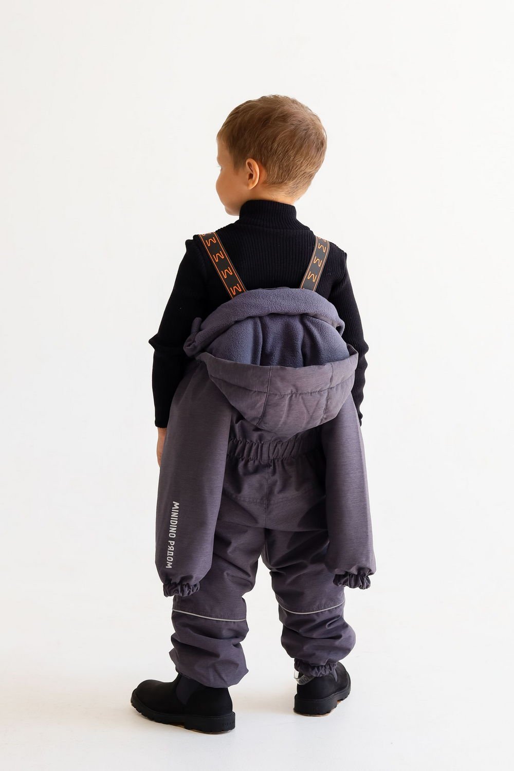 - мягкие лямки из помочной резины, благодаря которым можно скидывать верхнюю часть комбинезона и носить в помещении по принципу рюкзака