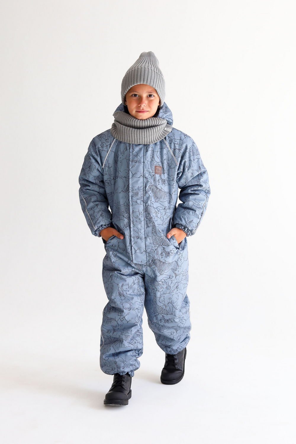 Комбинезон детский еврозима принт Сафари серо-голубой