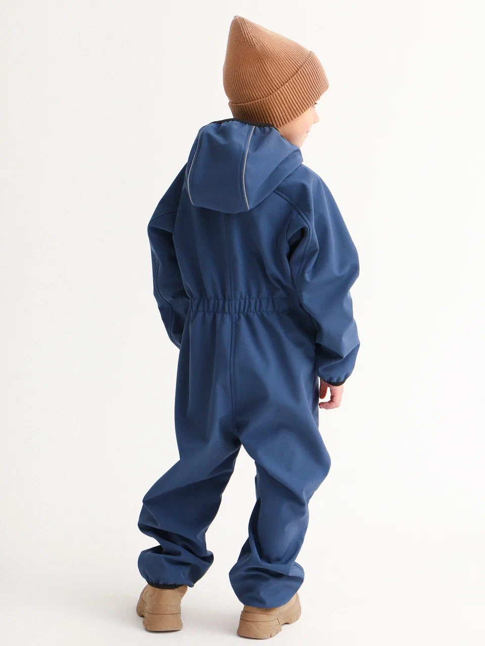 Комбинезон с застежкой на молнию, капюшоном со стойкой и утяжкой. Частичная утяжка по талии для лучшего прилегания. Карманы на кнопках для хранения мелочей, фирменные гребни «Дино» на спинке и капюшоне, световозвращающие элементы для безопасности в темное время суток. Внутренние мягкие лямки из помочной резины, благодаря которым можно скидывать верхнюю часть комбинезона и носить в помещении по принципу рюкзака.
