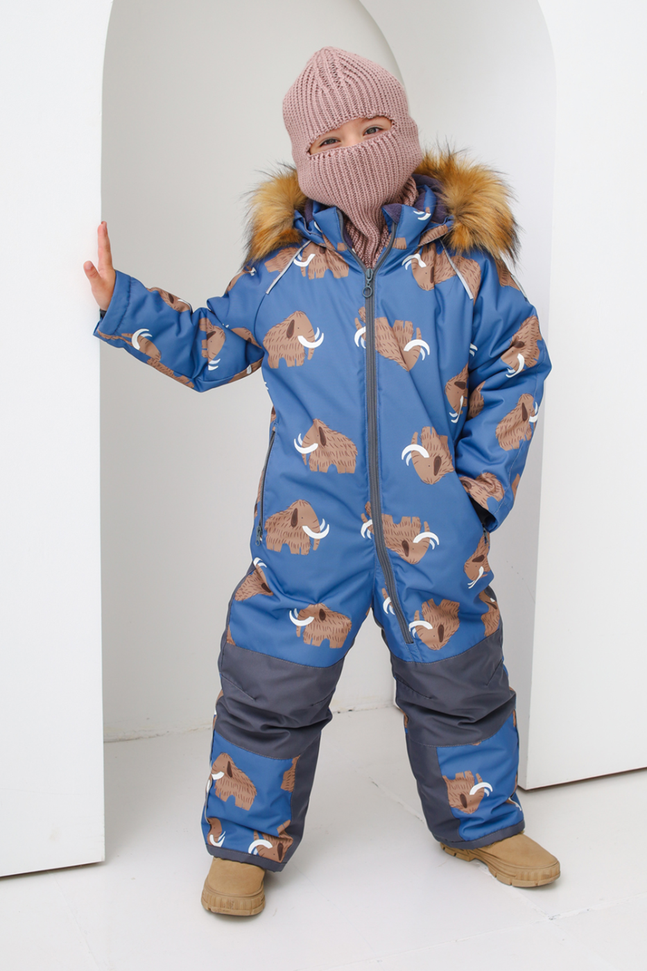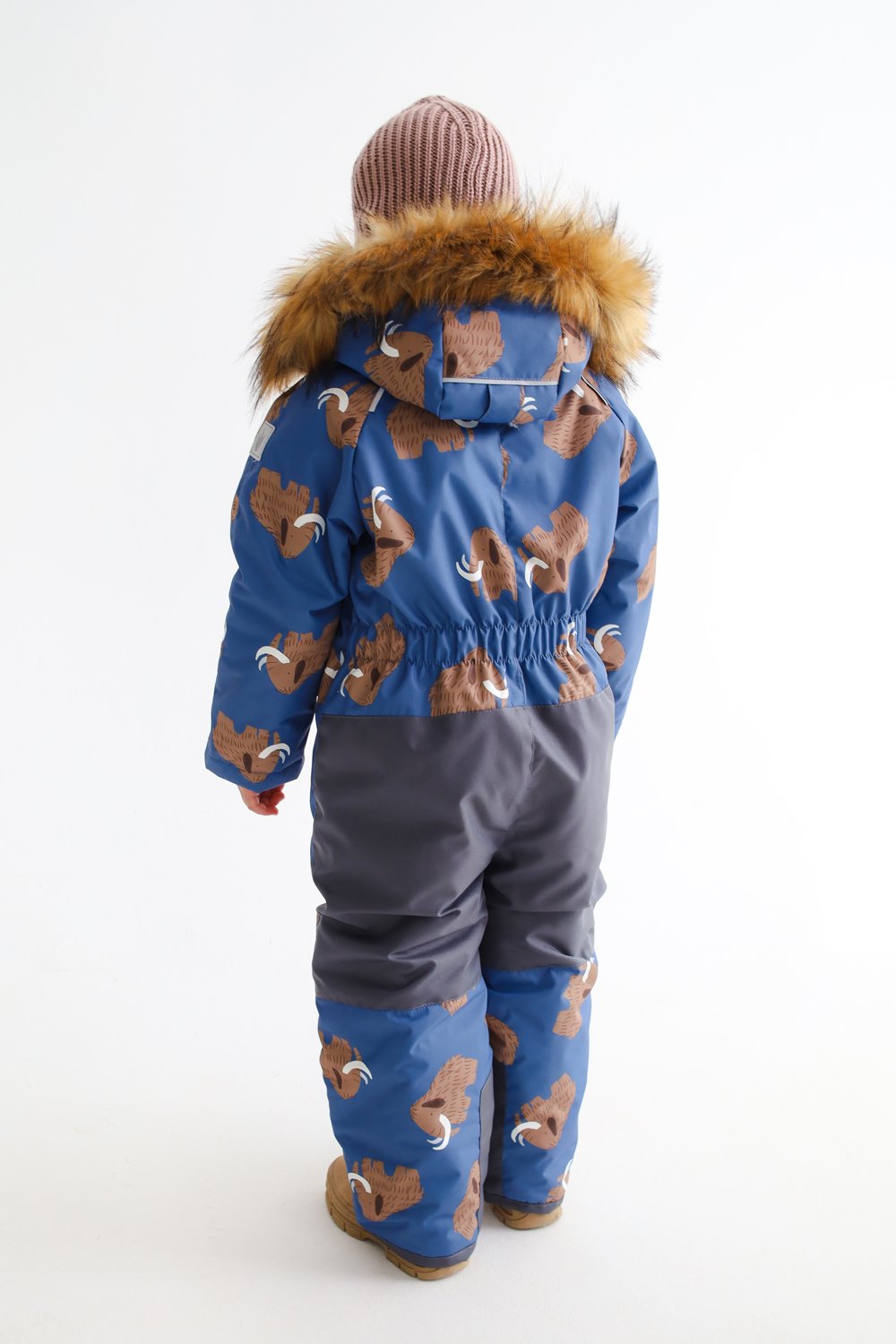 Комбинезон зимний Полюс принт мамонты деним