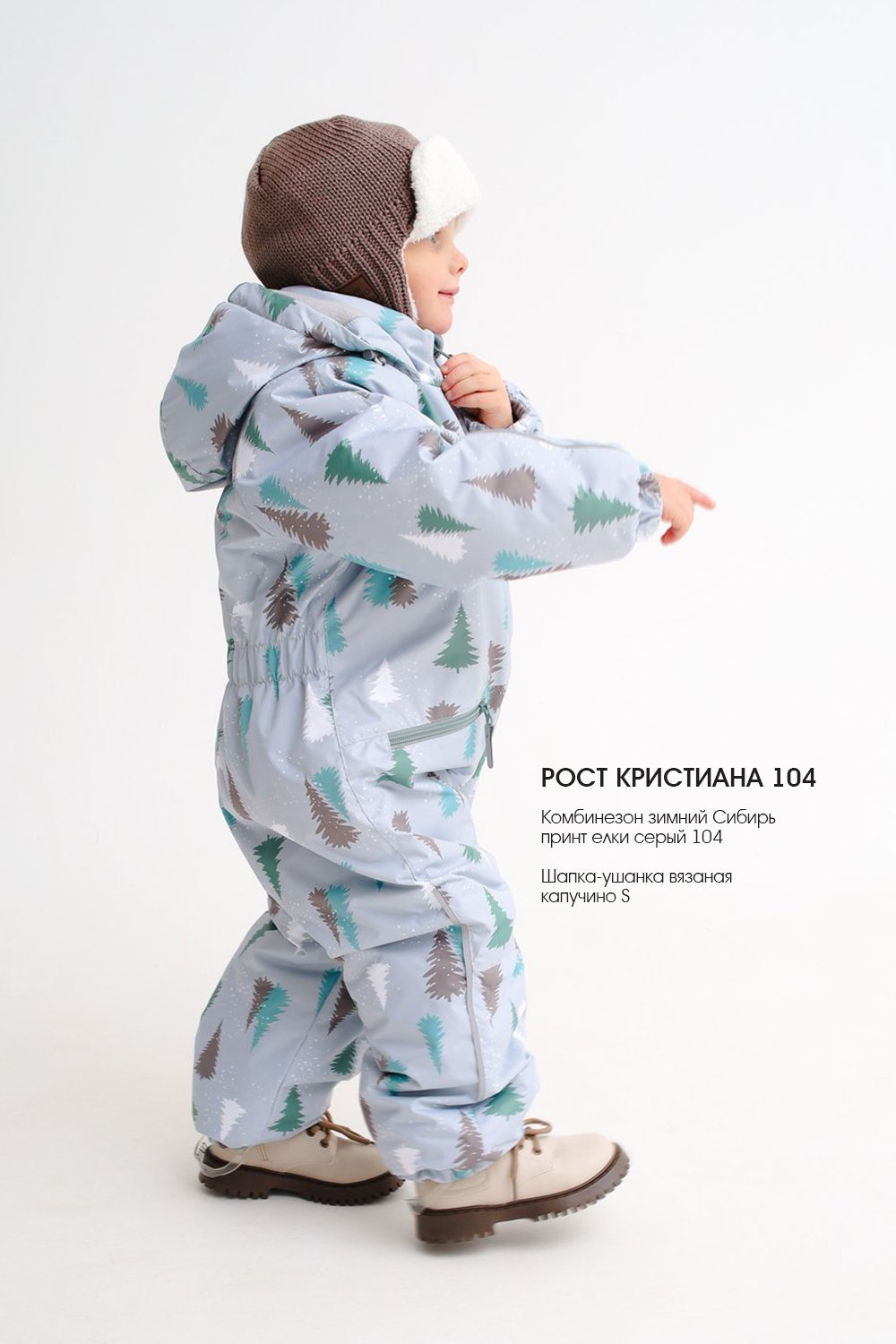 Комбинезон зимний Сибирь принт елки серый