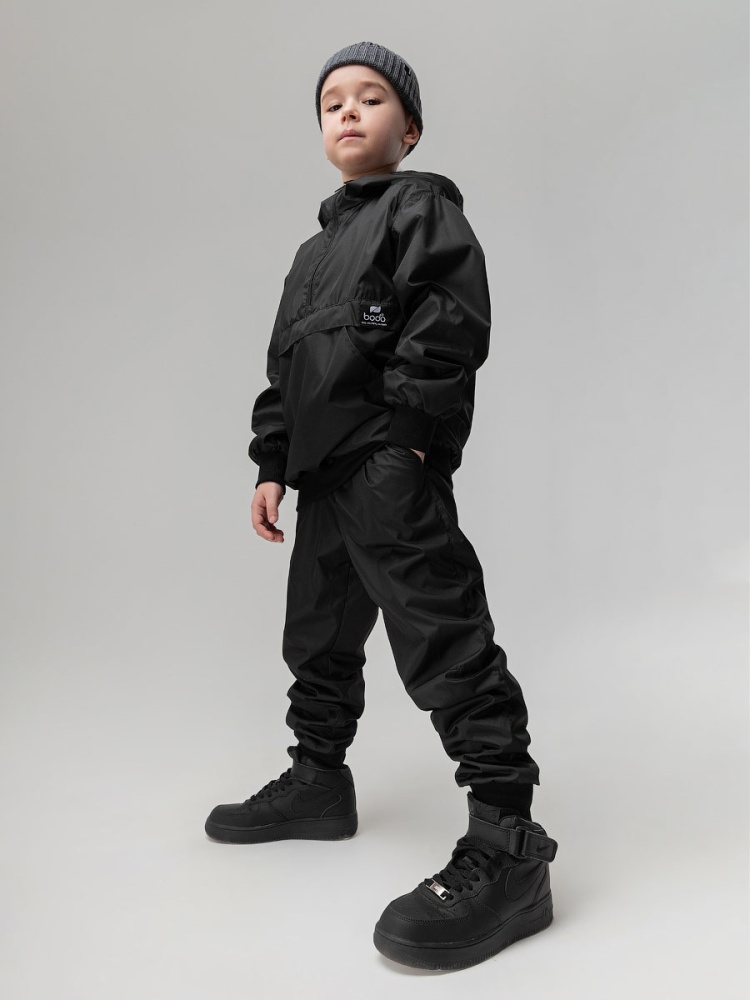 Материал дюспо Состав 100% полиэстер Костюм из плотного и стойкого к изнашиванию и повреждениям материала Дюспо, состоит из анорака и брюк, идеально подойдет для повседневной носки и активного отдыха. Анорак, детали: сквозные боковые карманы, несъемный капюшон на стойке закрывает шею, молния с защитой подбородка.Анорак надевается через голову.Брюки - джоггеры, пояс - эластичная резинка, низ изделия- манжеты. Материал верха: Дюспо, материал подклада хлопок 100 %, материал подклада на рукавах таффета.