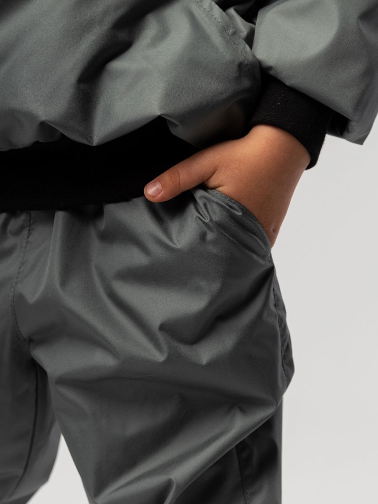 Материал Дюспо Состав 100% полиэстер Костюм из плотного и стойкого к изнашиванию и повреждениям материала Дюспо, состоит из анорака и брюк, идеально подойдет для повседневной носки и активного отдыха. Анорак, детали: сквозные боковые карманы, несъемный капюшон на стойке закрывает шею, молния с защитой подбородка.Анорак надевается через голову.Брюки - джоггеры, пояс - эластичная резинка, низ изделия- манжеты. Материал верха: Дюспо, материал подклада хлопок 100 %, материал подклада на рукавах таффета.