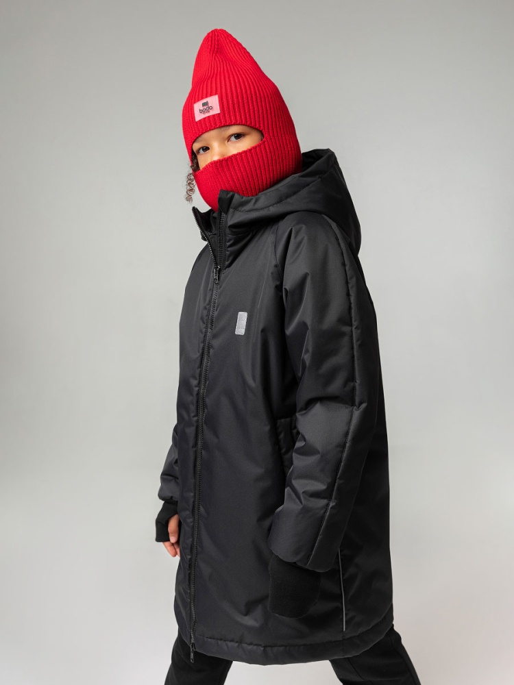 Материал мембранная ткань Состав 100% полиэстер Пальто для детей школьного возраста. Пальто утеплённое на подкладке, прямого силуэта, с центральной застёжкой на тесьму -молния. Пальто с рукавами реглан с притачной удлинённой манжетой с отверстием под палец. Капюшон со вставкой и с цельнокроеной стойкой. На полочке расположены карманы листочки с молнией. Материал верха: мембранная ткань 100% полиэстер, утеплитель Hetta micro 150 г/кв.м, утеплитель в капюшоне Hetta micro 100 г/кв.м, подкладочный материал флис 100% полиэстер. Мембрана 3000 мм/3000 г/кв.м, флис 130 гр. Температурный режим от 0 до -10 градусов, в зависимости от индивидуального теплообмена.