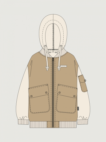 - внутренний карман на молнии, капюшон с кулисой для регулировки объема.