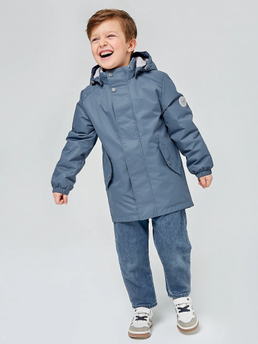 Куртка для мальчиков дошкольного возраста из мембранной ткани. Центральная молния закрыта планкой на липучках и кнопках. Комбинированная подкладка из цветного флиса и шелка с внутренним карманом на липучке. Съёмный капюшон с подкладкой из цветного флиса. 2 передних кармана с клапаном на кнопке. На куртке расположены светоотражающие элементы. Рассчитана на температуру от 0 до +10. флис, 100% полиэстер
