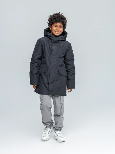 Куртка для мальчиков из мембранной ткани. Застёжка на молнию, закрытая планкой на кнопках и липучках. Комбинированная подкладка из флиса и шёлка с внутренним накладным карманом на липучке, с нашивкой-комиксом. Втачной капюшон с подкладкой из флиса. 2 накладных кармана с клапаном на кнопках. Низ рукава на манжете с резинкой.На куртке располагаются светоотражающие элементы. Рассчитана на температуру от 0 до +15. 100% полиэстер