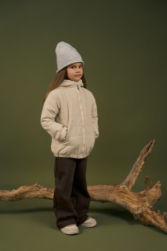 Куртка облегченная демисезонная с капюшоном с цельнокроенной стойкой. Манжеты на резинке на рукавах и по низу изделия, прорезные карманы по переду.